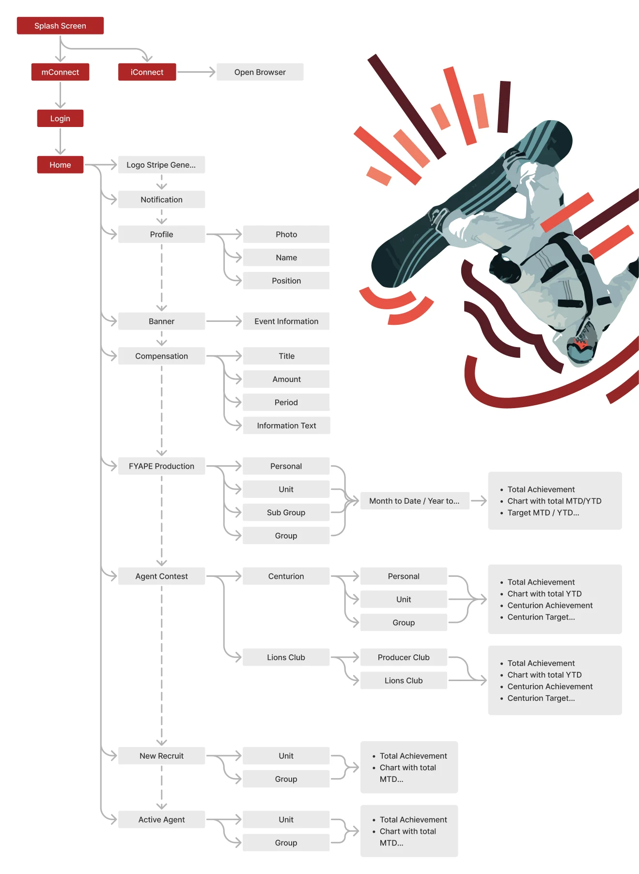 To address these challenges, a mobile application compatible with both iOS and Android was developed. Designed specifically for agents’ daily needs, the app enables them to easily access essential features and information anytime, anywhere. With a user-friendly interface and relevant functionalities, the application improves efficiency, simplifies reporting processes, and provides a more seamless experience for agents of all age groups.