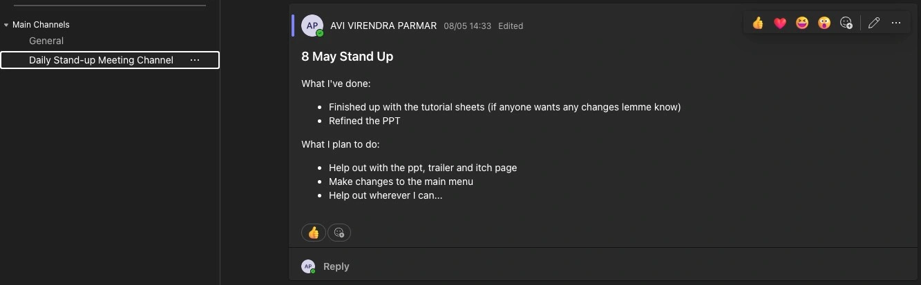 Thankfully, all went well, and I learnt a lot of version control. I was able to create my own branches, and contribute to the art of the game, and for any future presentations to the project supervisor, or for play testing purposes, I could pull and compile the latest version of the game immediately, without having to ask the programmers for a build.