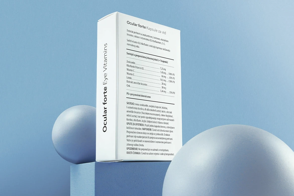 Ocular Forte vision capsules are a dietary supplement and contribute to the maintenance of normal vision. Ocular forte capsules contain an innovative formulation and are intended for everyone who has a deficiency of substances to preserve healthy vision.
