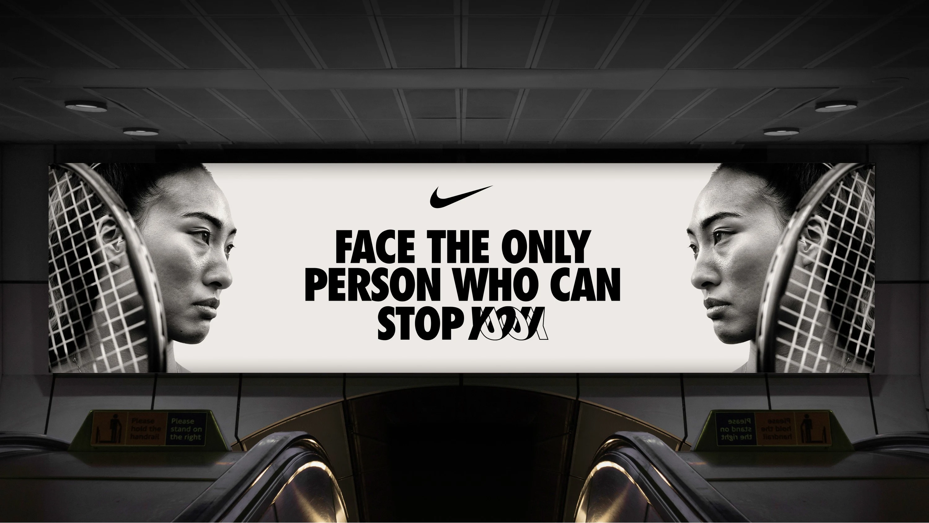 As a brand designer working solo, I don't have the resources to bring everything to life exactly as I imagine. I searched visuals online to match the vision I had in mind. The goal was simple: make people believe Nike could have made this. But the challenge wasn’t execution. It was turning an internal, psychological battle into a visual system that felt bold, iconic, and true to Nike’s DNA. There was no external enemy so I needed to capture that idea of “against yourself.” Like a shadow. A reflection. A version of you in conflict. The hardest part? Making something visually simple, but conceptually deep, representing that idea of internal fight.