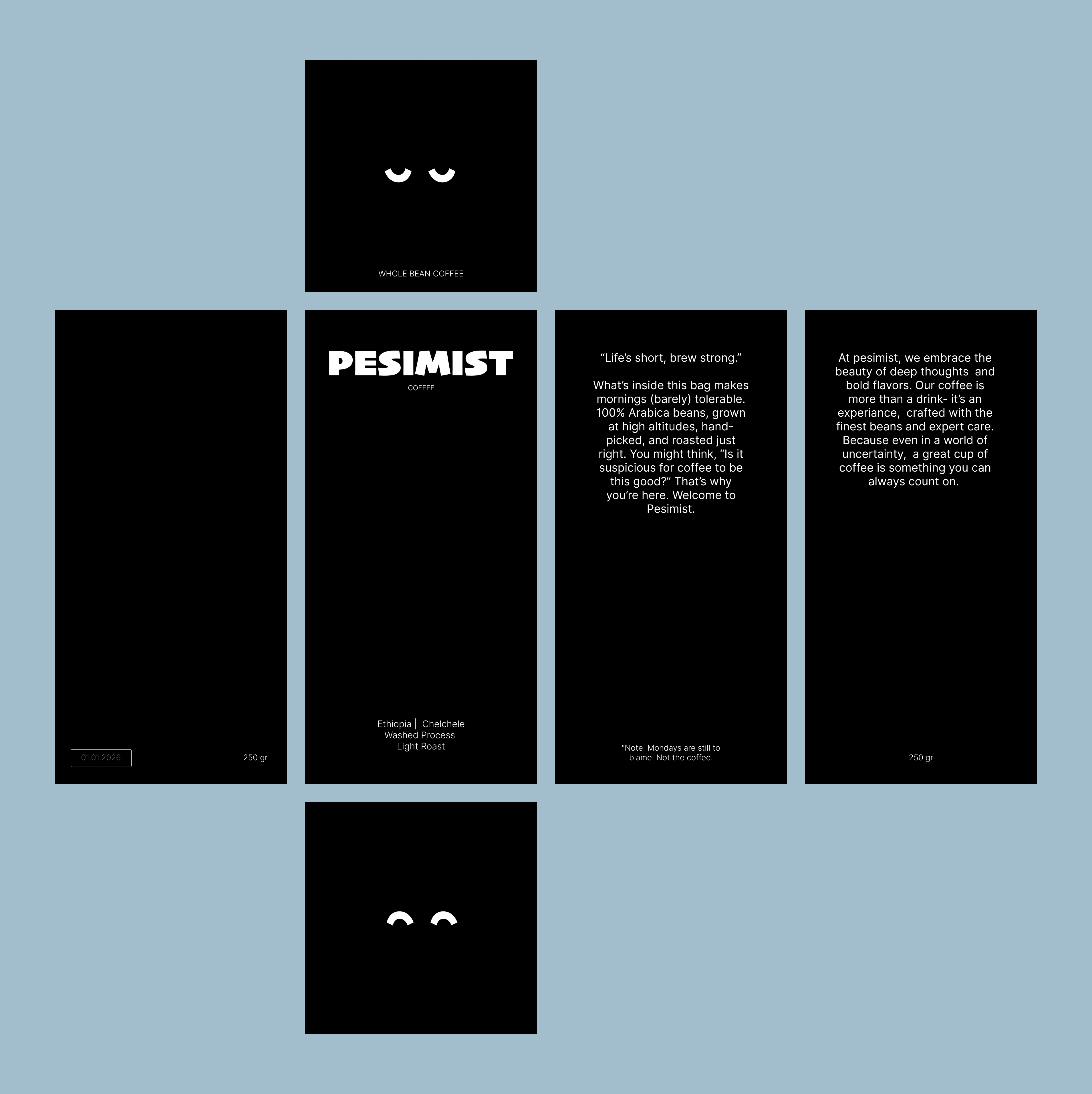 PPesimist Coffee is a brand identity project that combines minimal design and witty storytelling to position an independent café as a cultural space beyond coffee.