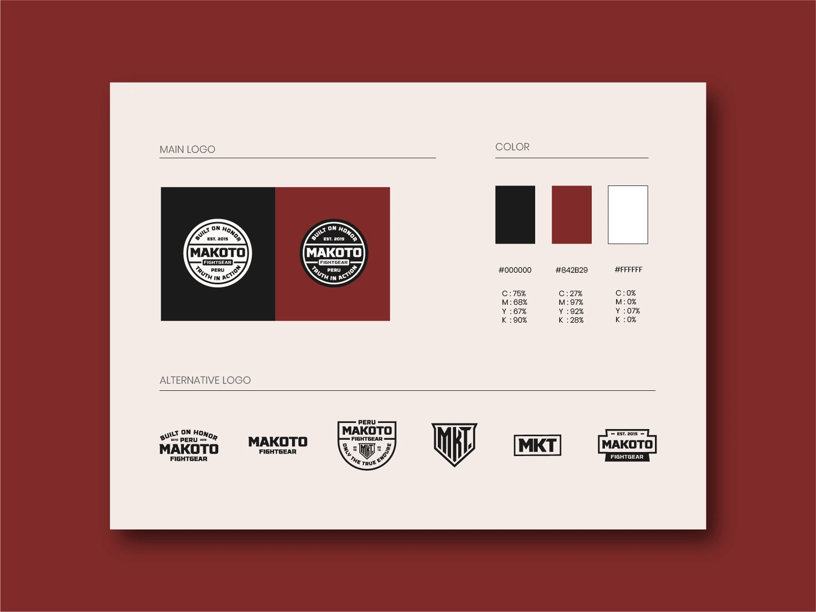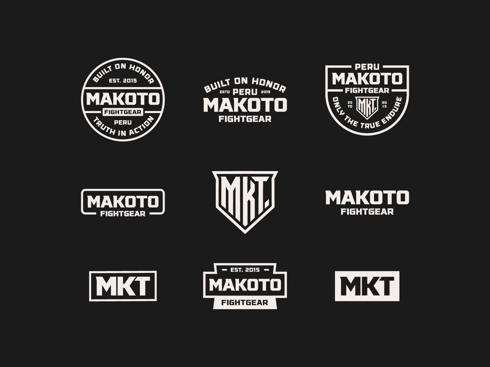 Full brand identity exploration for Makoto Fightgear, built around discipline, strength, and authentic combat culture.This system includes a complete set of badges, monograms, and wordmarks—each designed to deliver versatility across apparel, equipment, digital presence, and merchandise.Clean geometry, bold type, and structured layouts create a cohesive visual language that embodies the brand’s mindset: unwavering honor and endurance