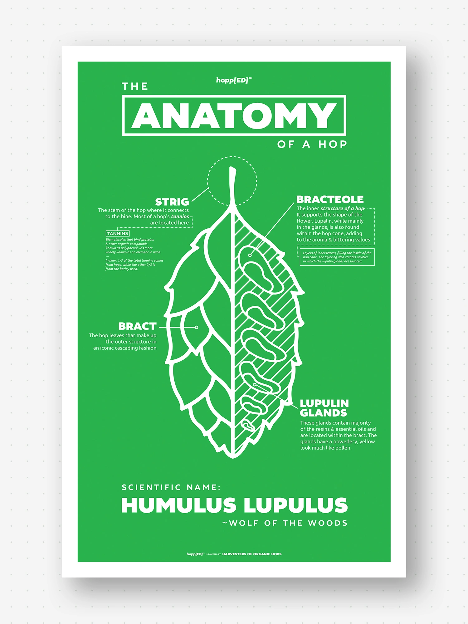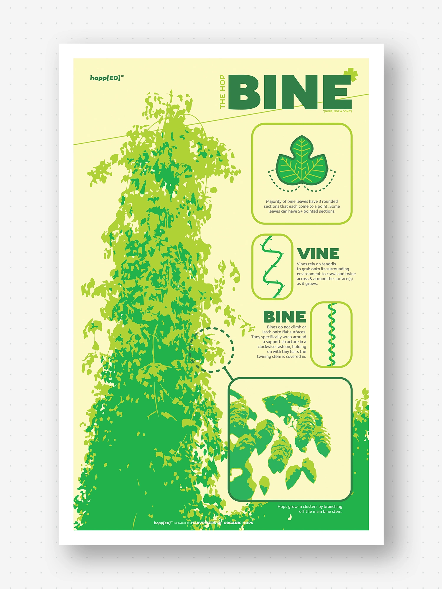 I worked with HOOH Hops to create a series of educational posters about hops—yep, one of the ingredients for making beer! Thanks to their essential oils, called terpenes, there are many different varieties of hops that produce a range of flavours and aromas. This gives brewers room to come up with nuanced flavours and bittering techniques in their brewing process.