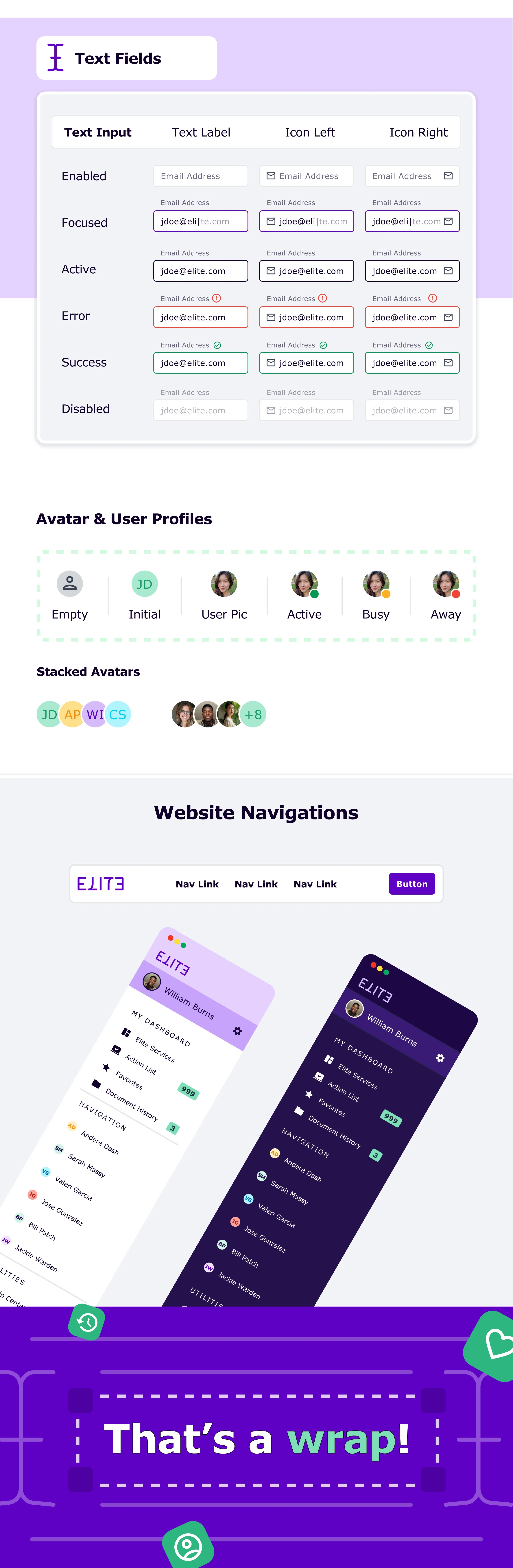 Elite Design System: a cohesive brand system with colors, typography, components, and icons built for clarity, accessibility, and trust.