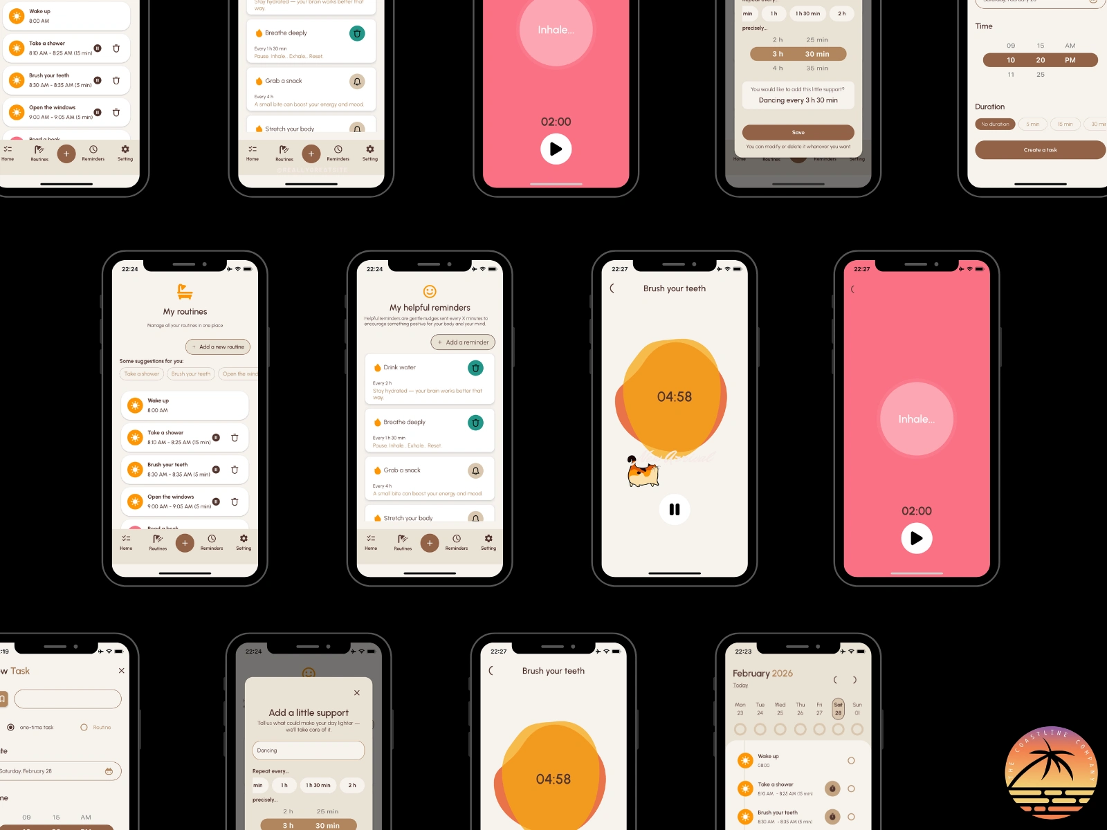 The app also includes short breathing and relaxation exercises with customizable timers, helping users reset their focus and reduce stress throughout the day. Reminders and notifications help maintain consistency, while progress statistics allow users to track their productivity and routines over time.