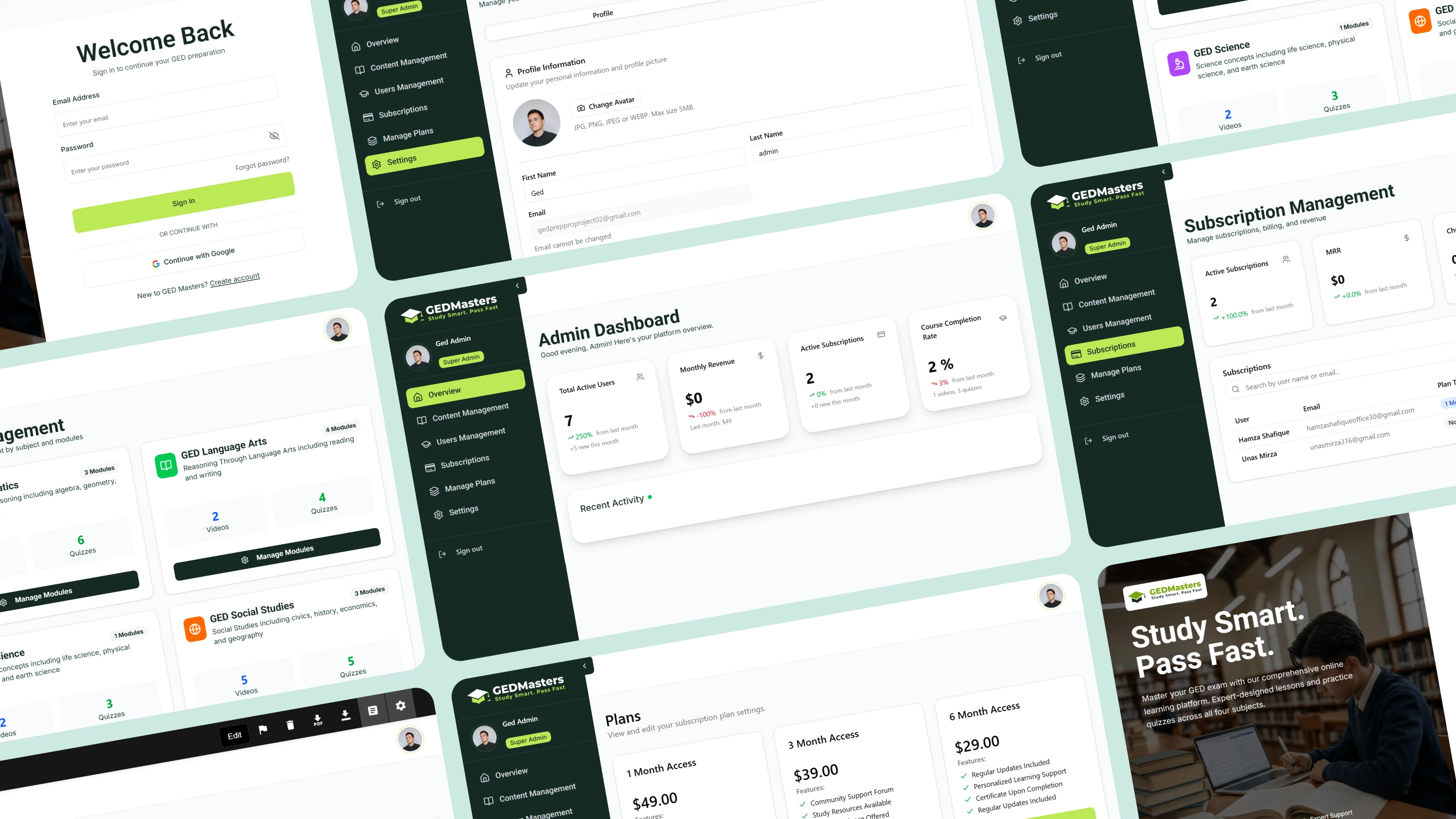 A full-featured EdTech web platform built for students and administrators alike. It covers learning management, course control, subscriptions, and performance tracking all within a clean, scalable dashboard. Designed for clarity, usability, and conversion-driven growth from day one.