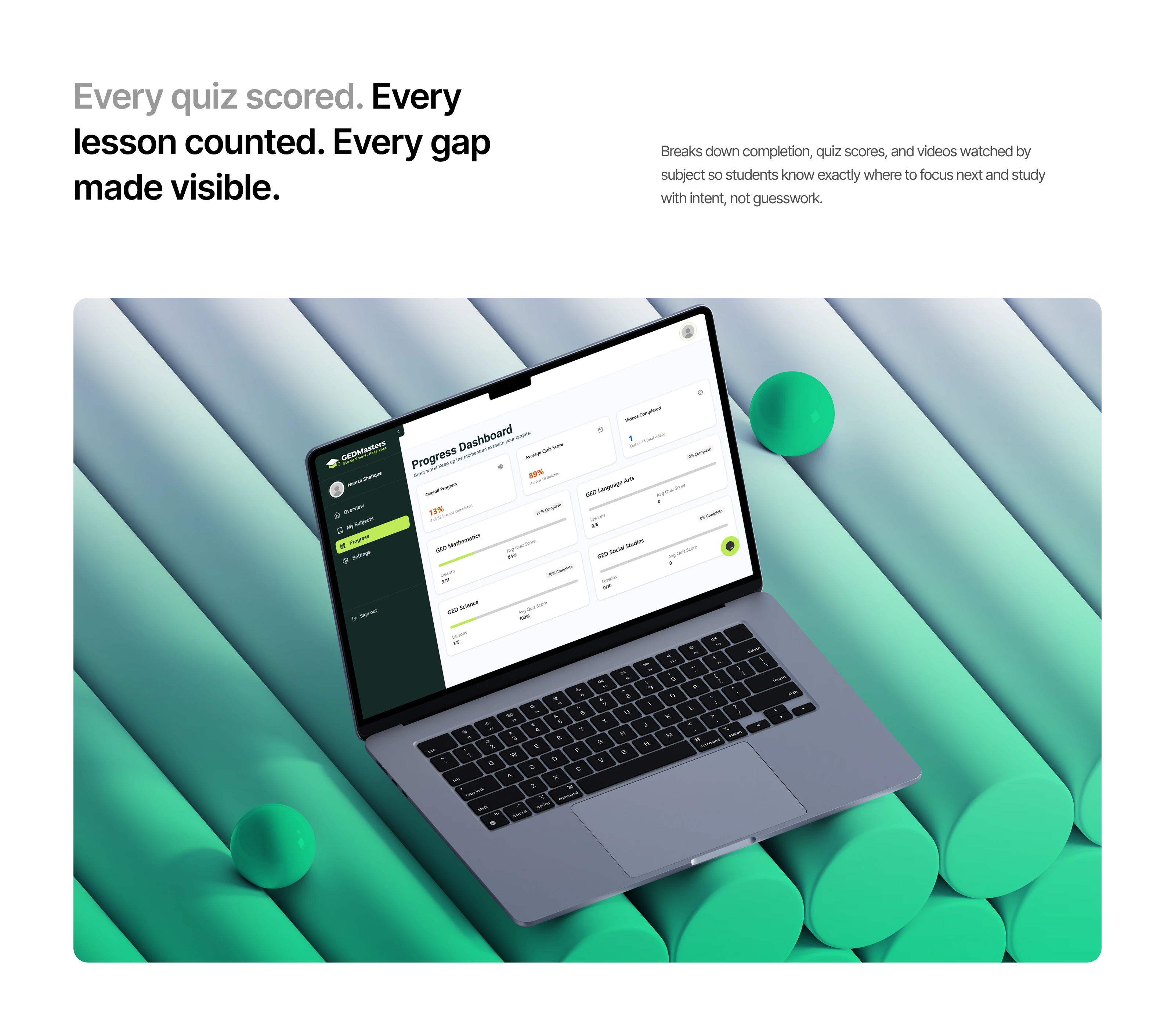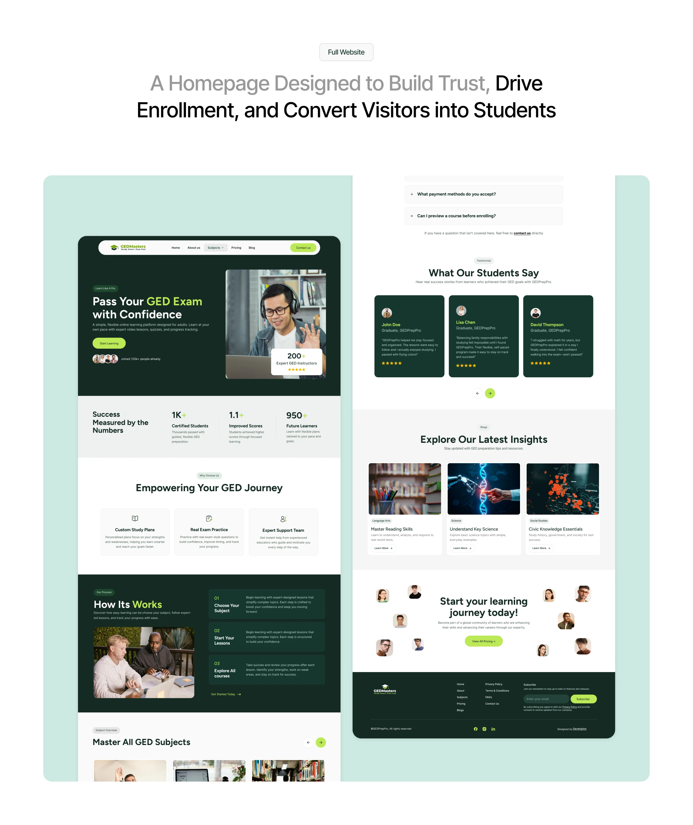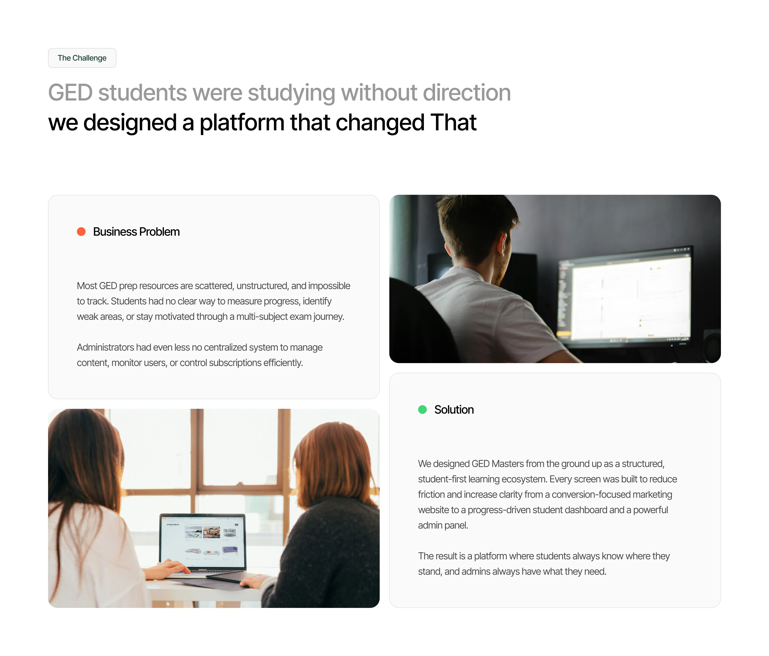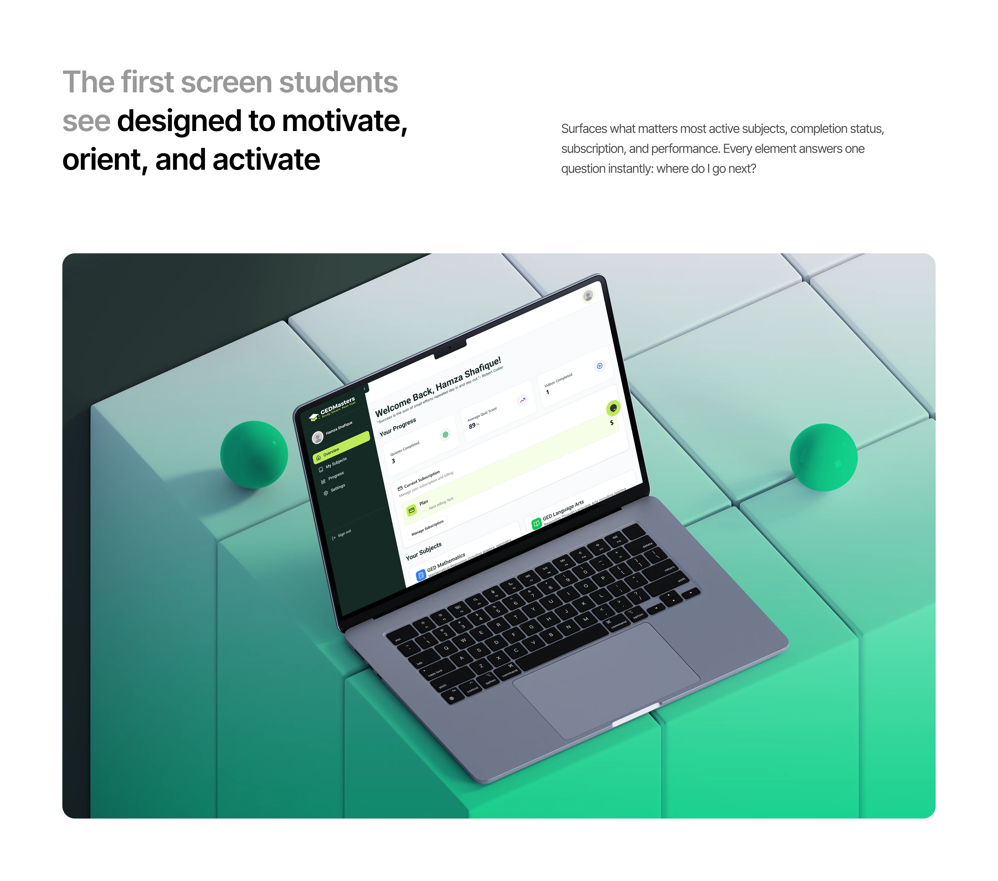 A scalable EdTech platform combining learning management, course control, and performance tracking in one seamless dashboard. Built with a clean, conversion-focused design for both students and admins.