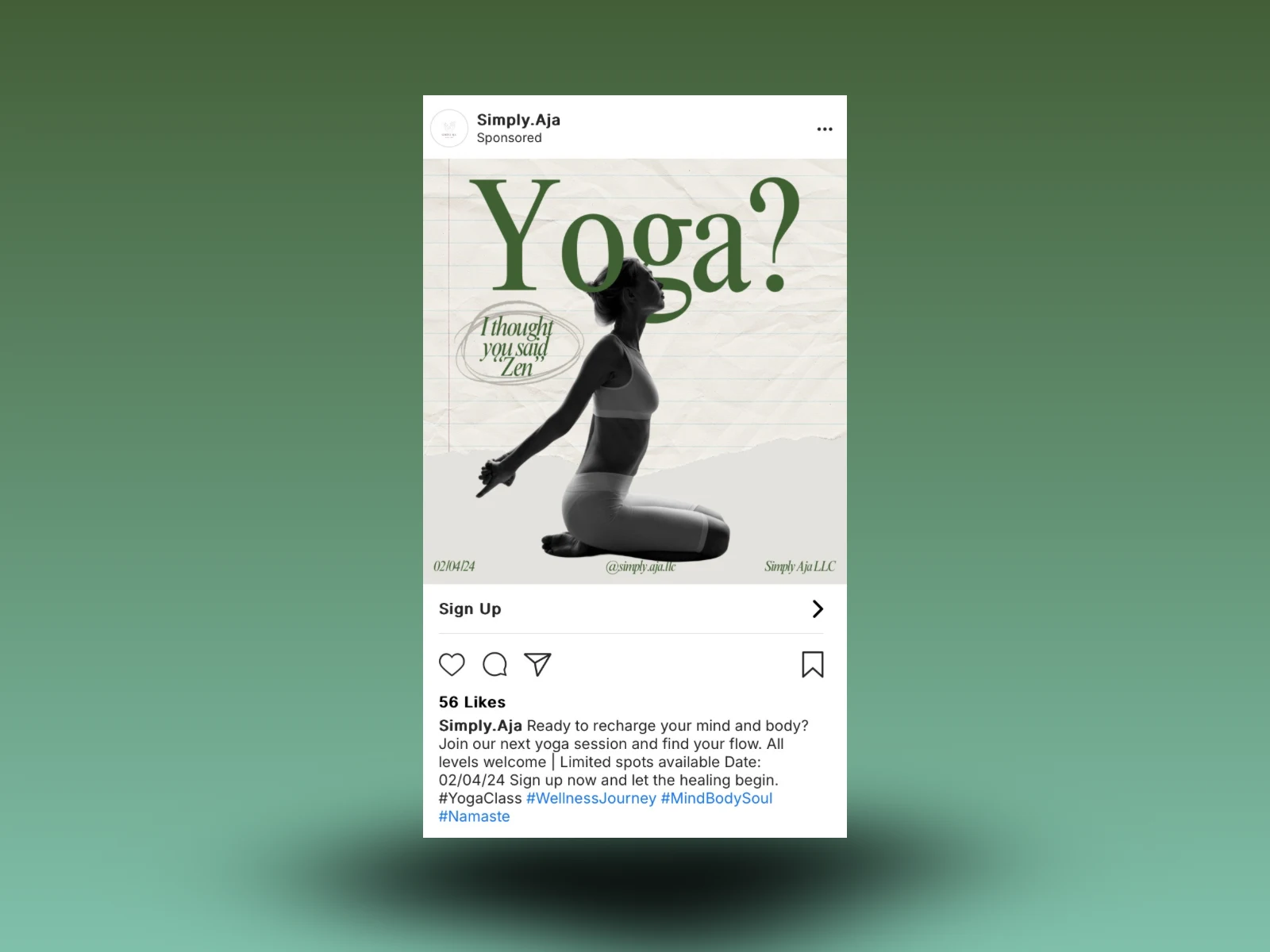 Clean, calming yoga promo design made to boost sign-ups. Balanced layout, soft tones, and clear messaging for a mindful, wellness-driven brand.
