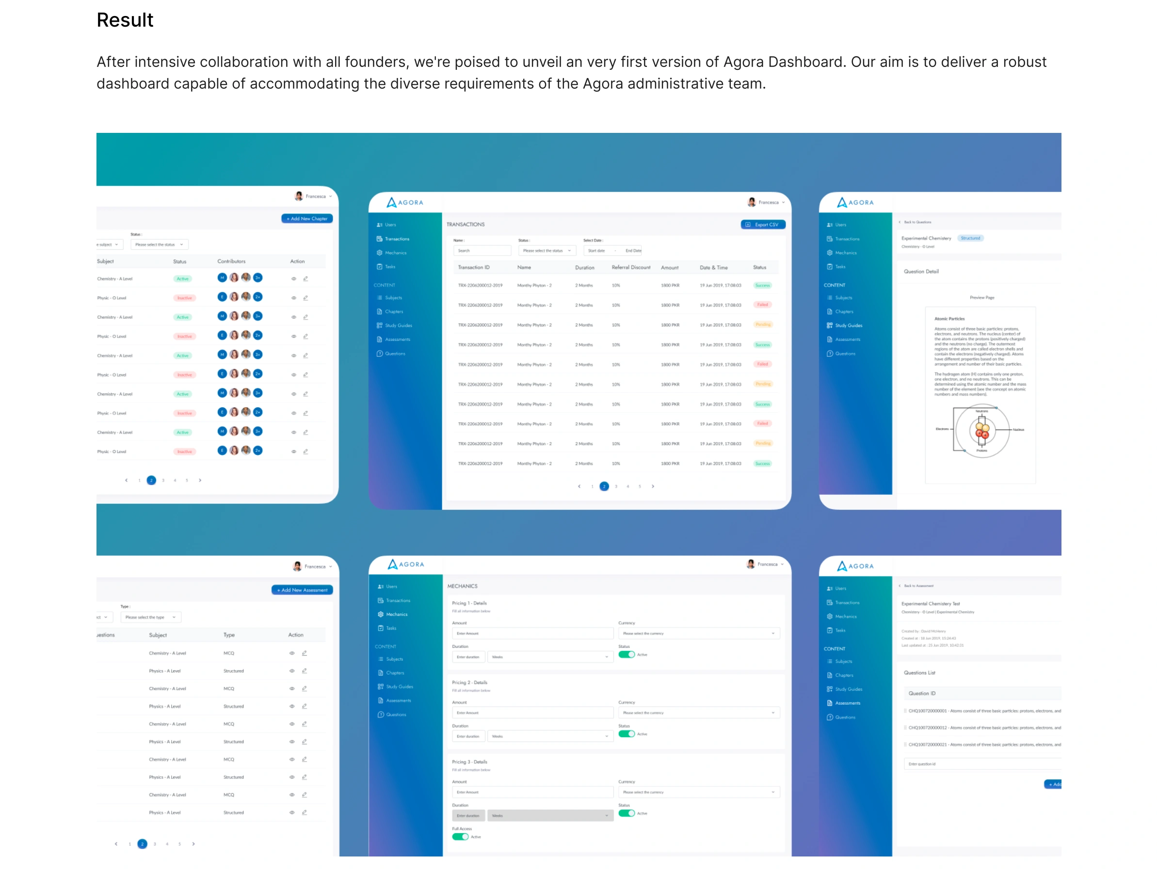 Streamlined Agora’s platform to make complex study modules easy to access, while equipping admins with a robust dashboard making complex content easy to manage.