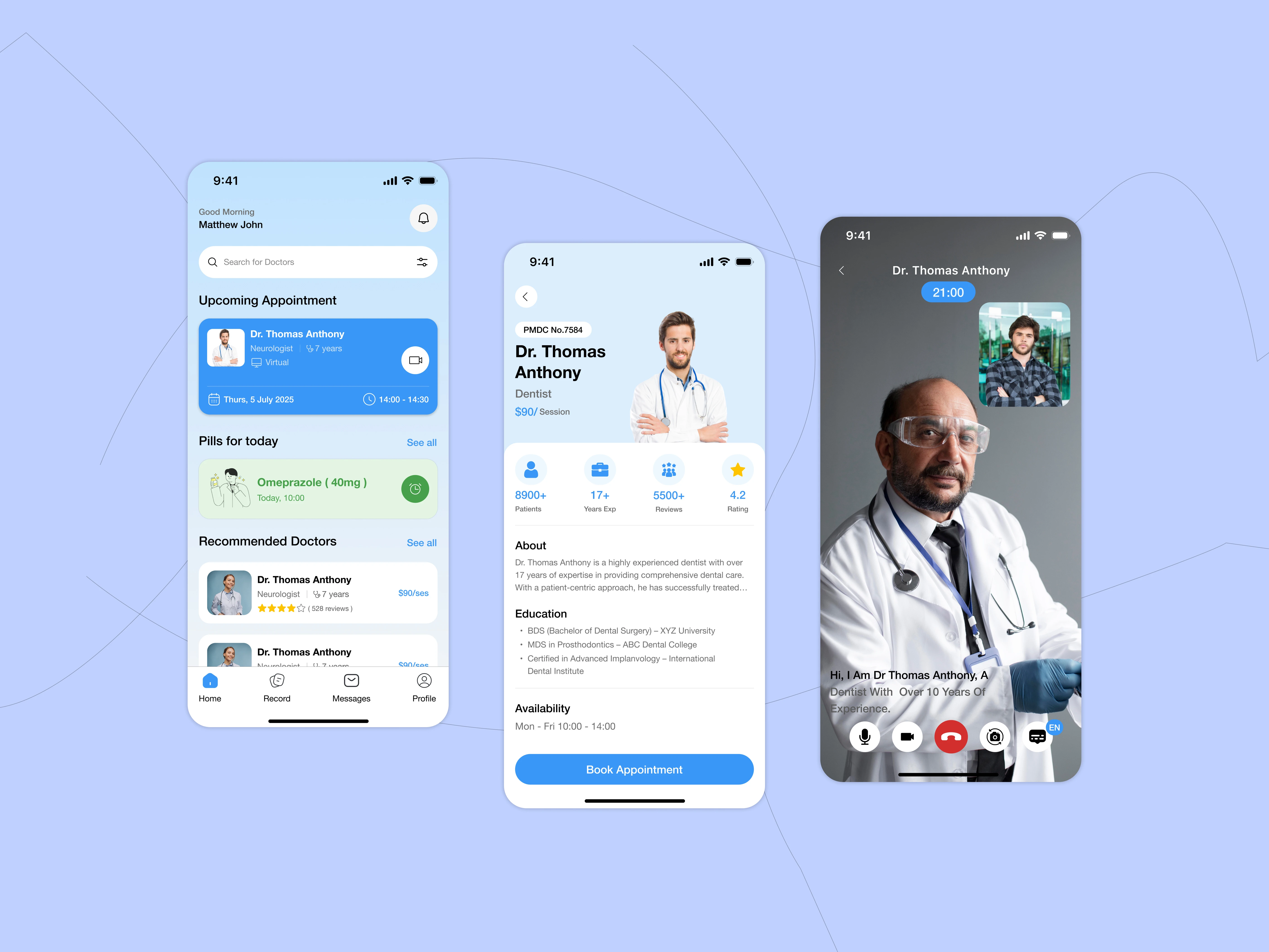 A clean and intuitive mobile app design for seamless virtual healthcare. Users can easily book appointments, view their upcoming sessions, manage prescriptions, and connect with doctors via video calls. Focused on a smooth user experience, modern visuals, and accessibility.