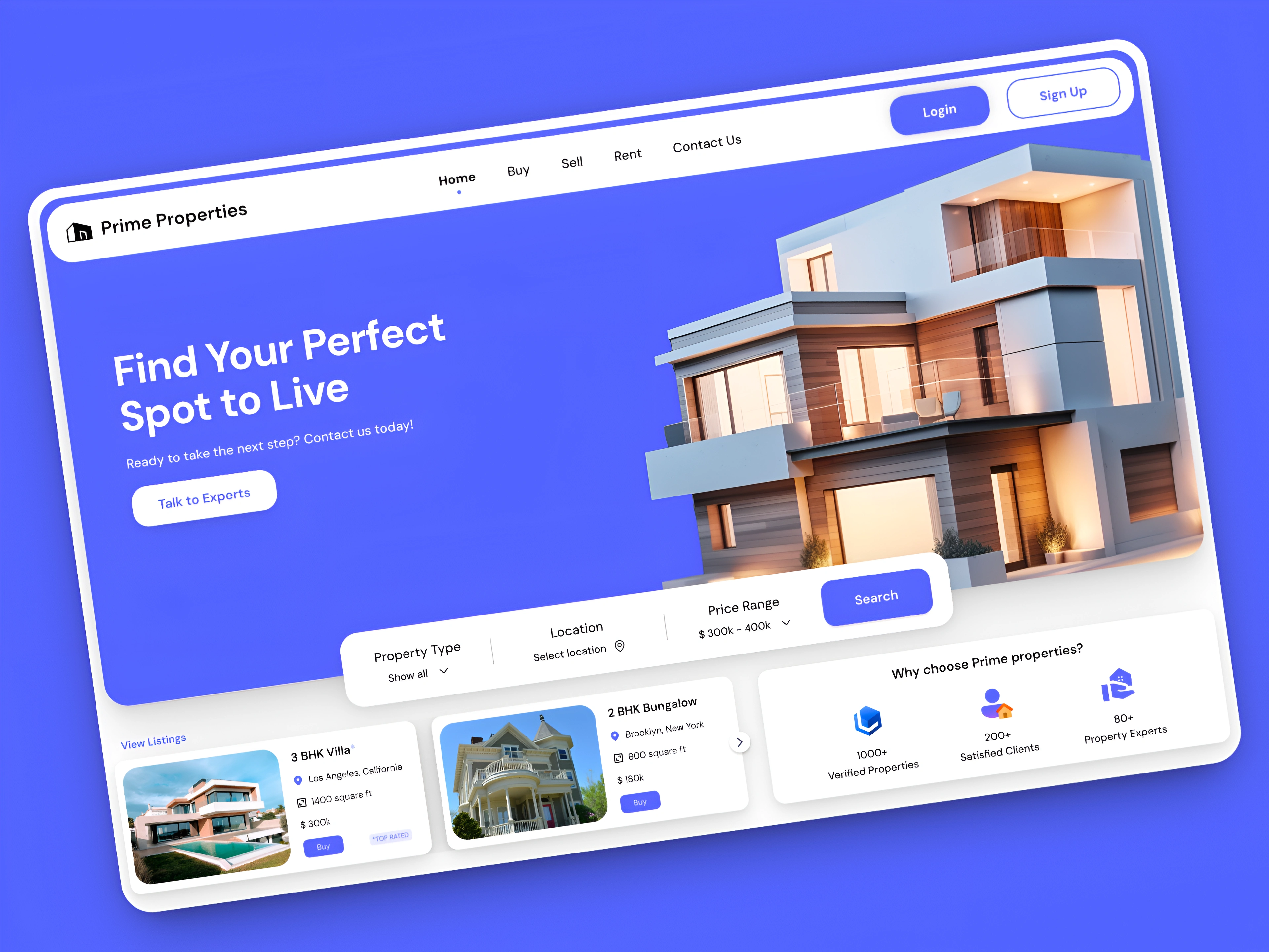 I designed Prime Properties, a modern real estate homepage built for effortless property discovery. With smart filters for property type and price, a dynamic property carousel, and curated top listings, the layout balances clarity with elegance. The design not only simplifies browsing but also builds trust with a polished, professional look. Excited to keep creating digital experiences that make exploring easier and more enjoyable!