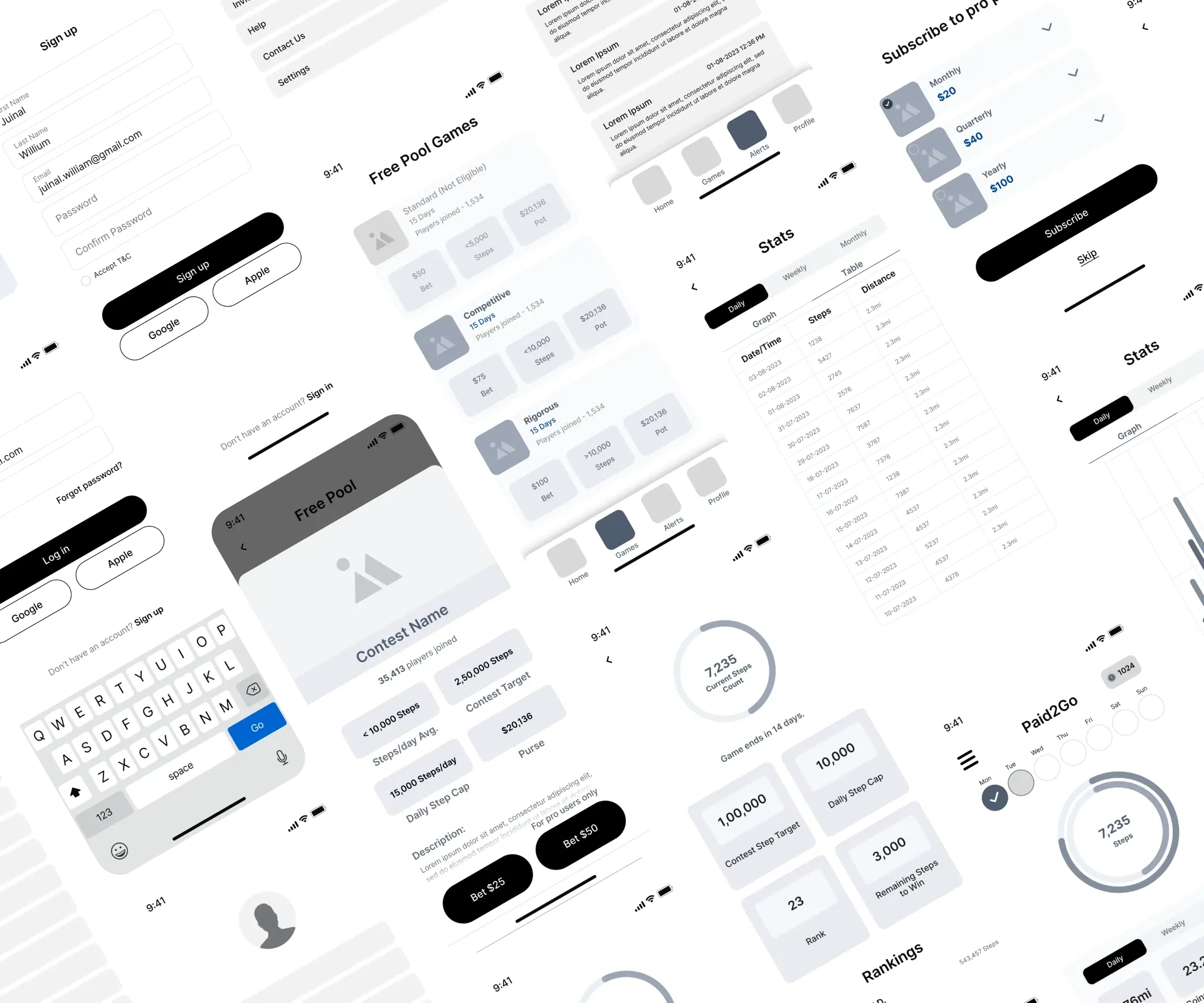 I began with app UI sketches to explore various UX options and user flows. Next, I created detailed wireframes to illustrate the full user journey and app structure. After client discussion and valuable feedback, we refined the app's direction and key features. Finally, I developed high-fidelity UI designs, incorporating our agreed UX decisions, brand guidelines, and visual elements.