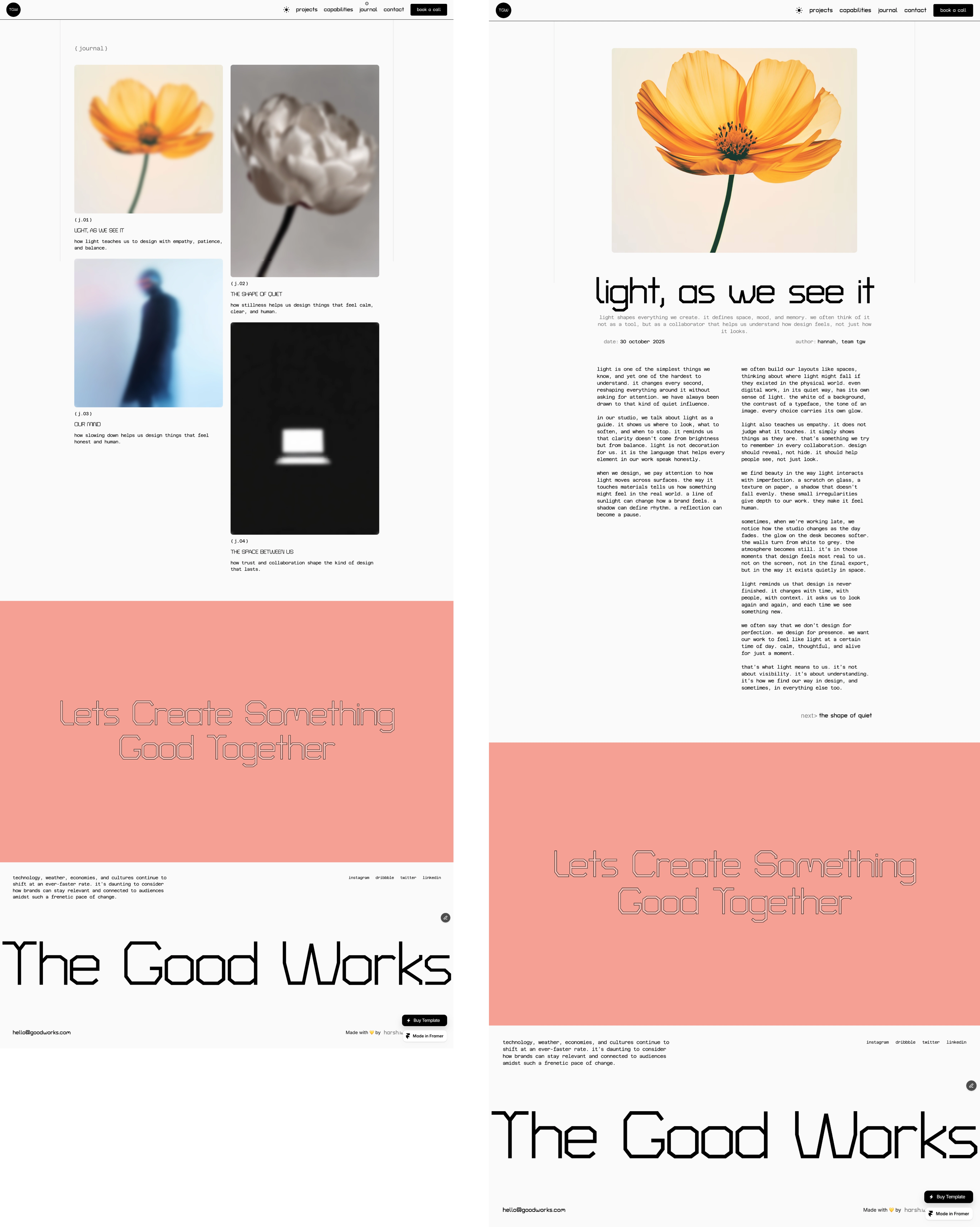 TGW started as an exploration into building a calm, editorial-style studio template in Framer. The goal was to create a space where work, writing, and ideas could exist without noise, a template that felt quiet, intentional, and human.