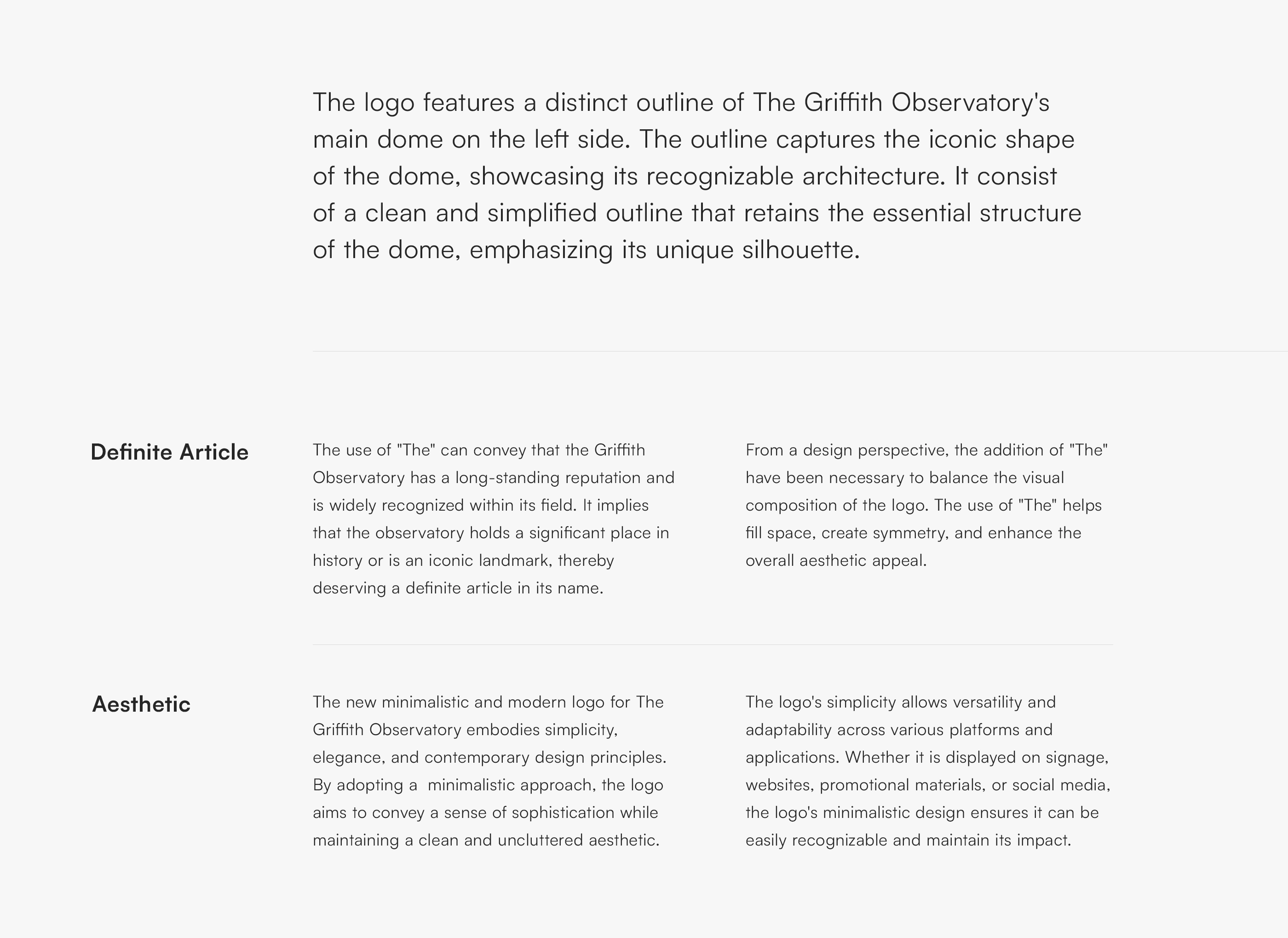 We blend the timeless elegance of Art Deco with the contemporary aesthetics, cleanliness, and minimalism to reimagine the identity of the Griffith Observatory.