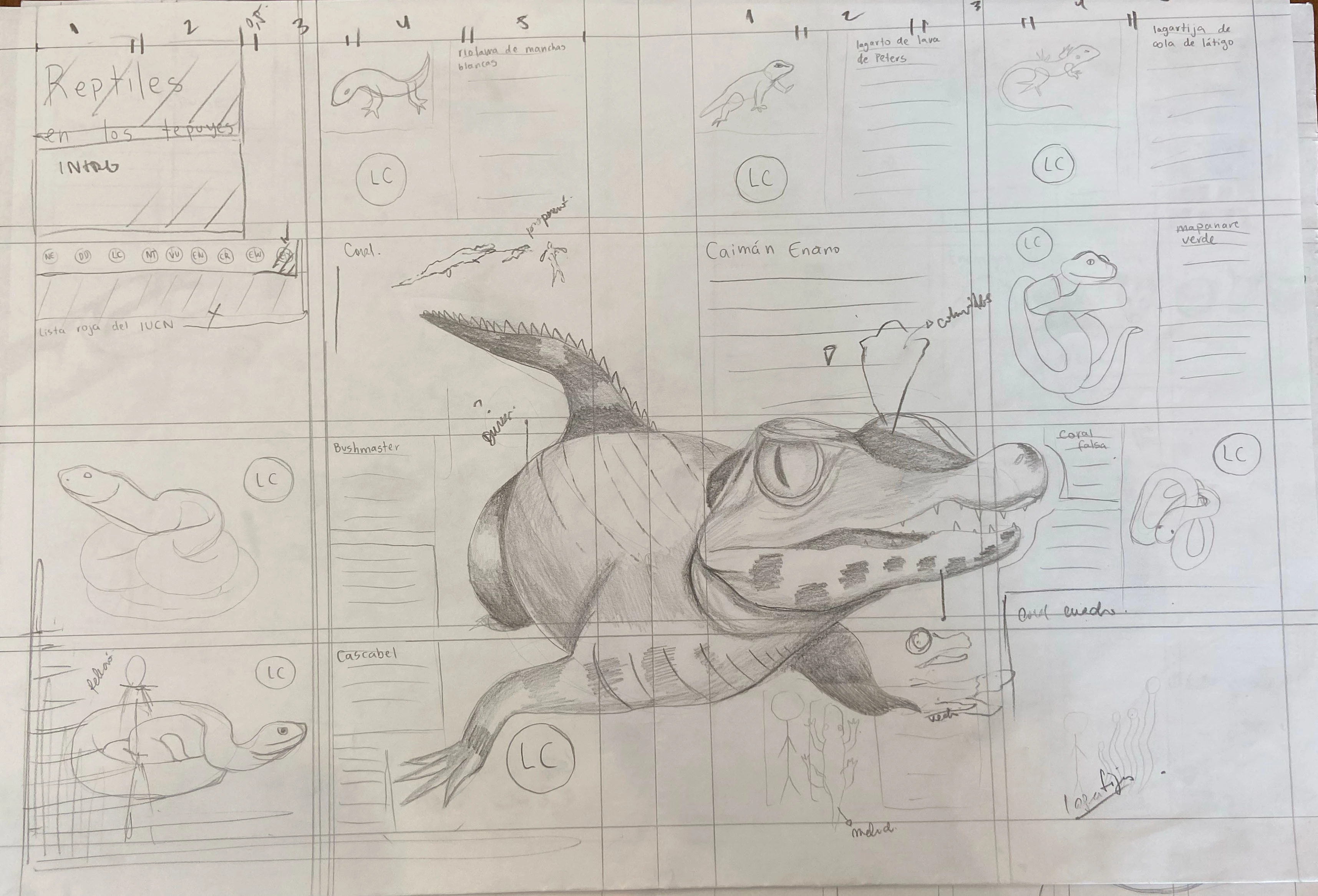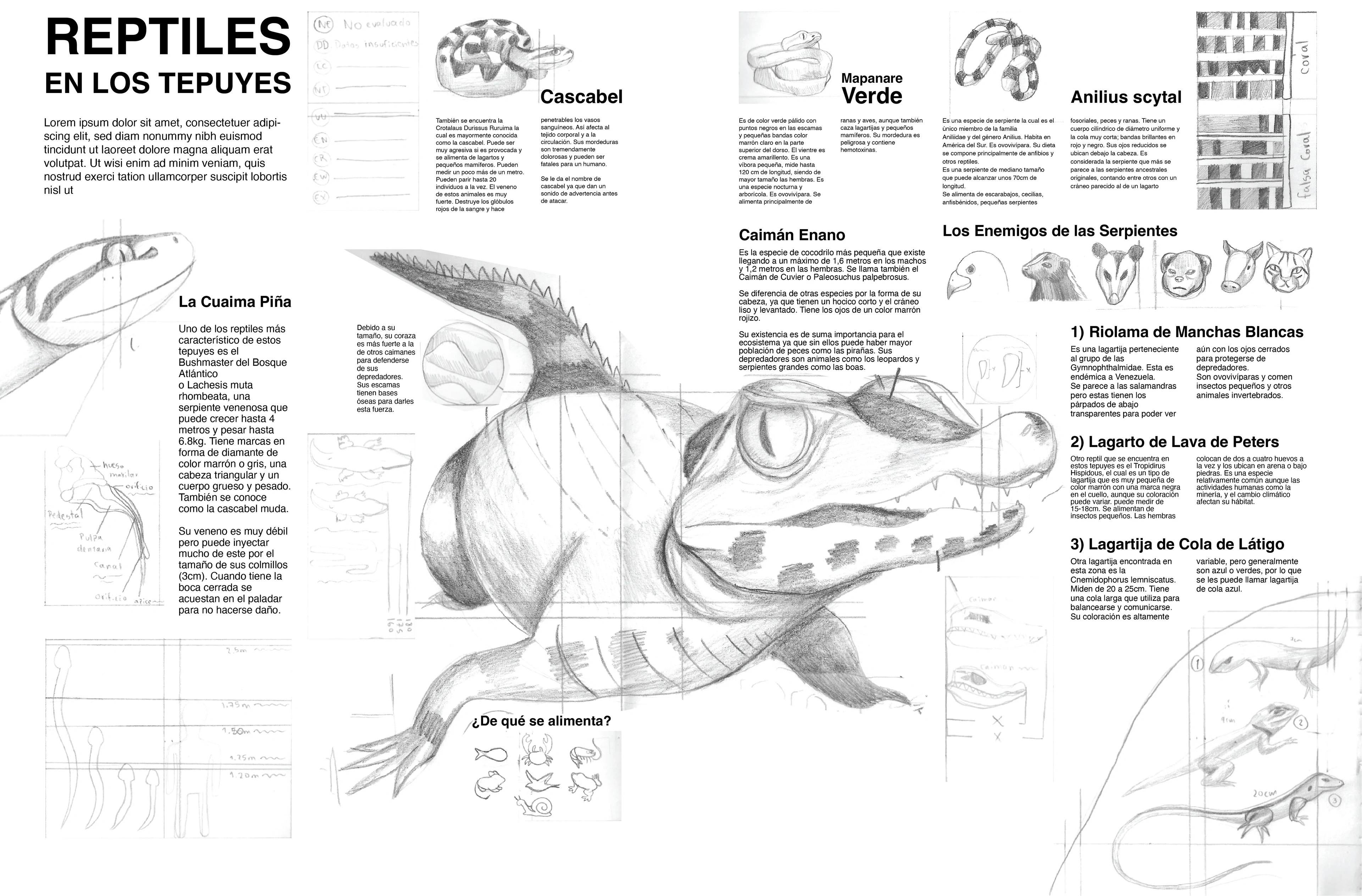 An illustrated infographic about the reptiles on the venezuelan tepuis "Roraima" and "Kukenán." The illustrations were hand-painted.