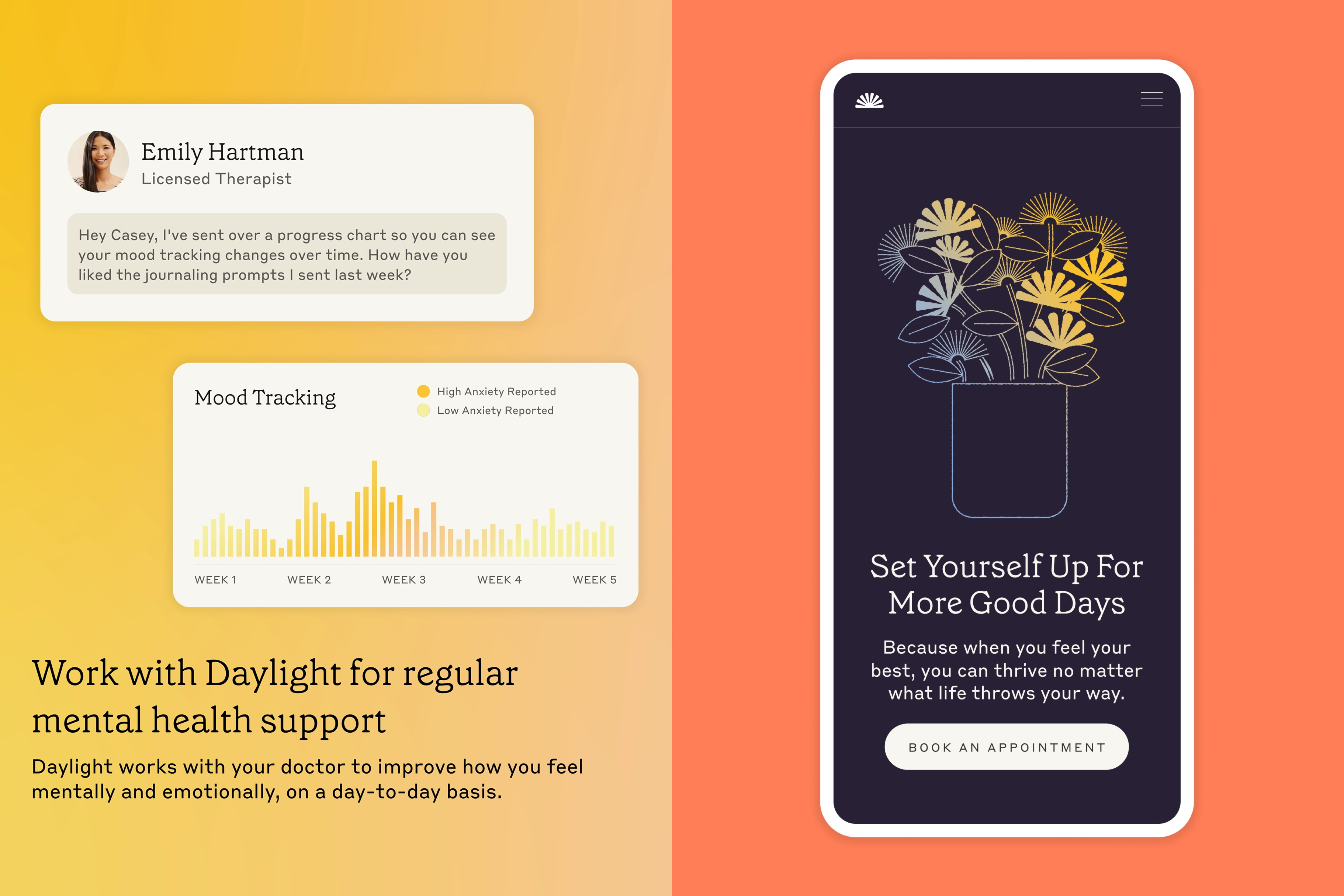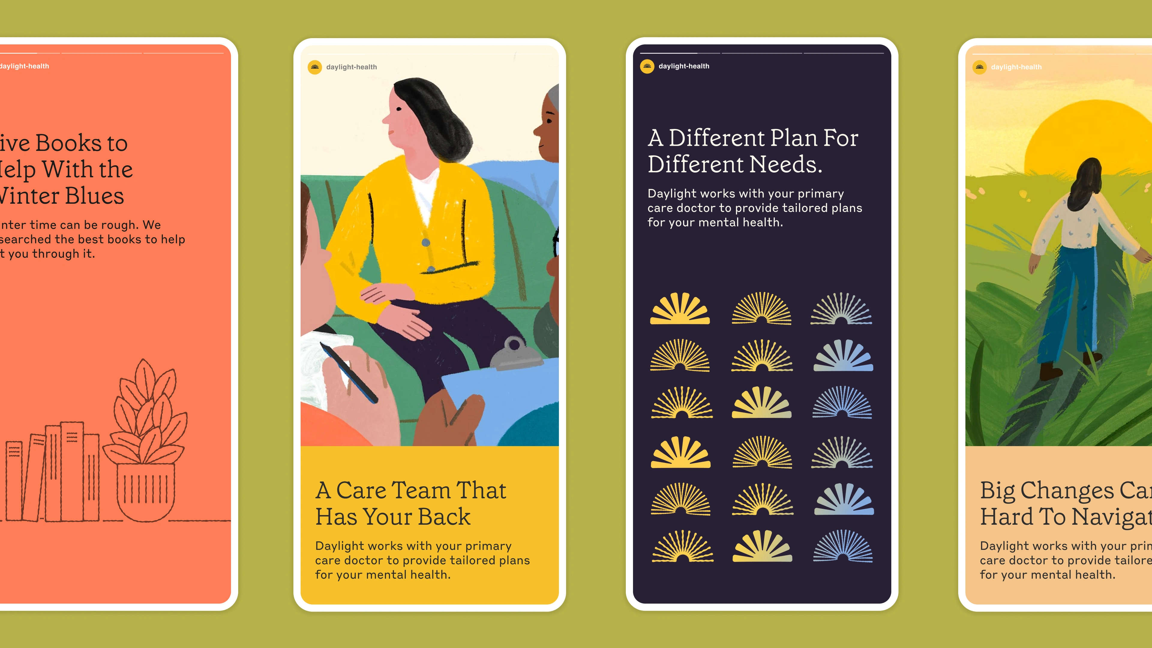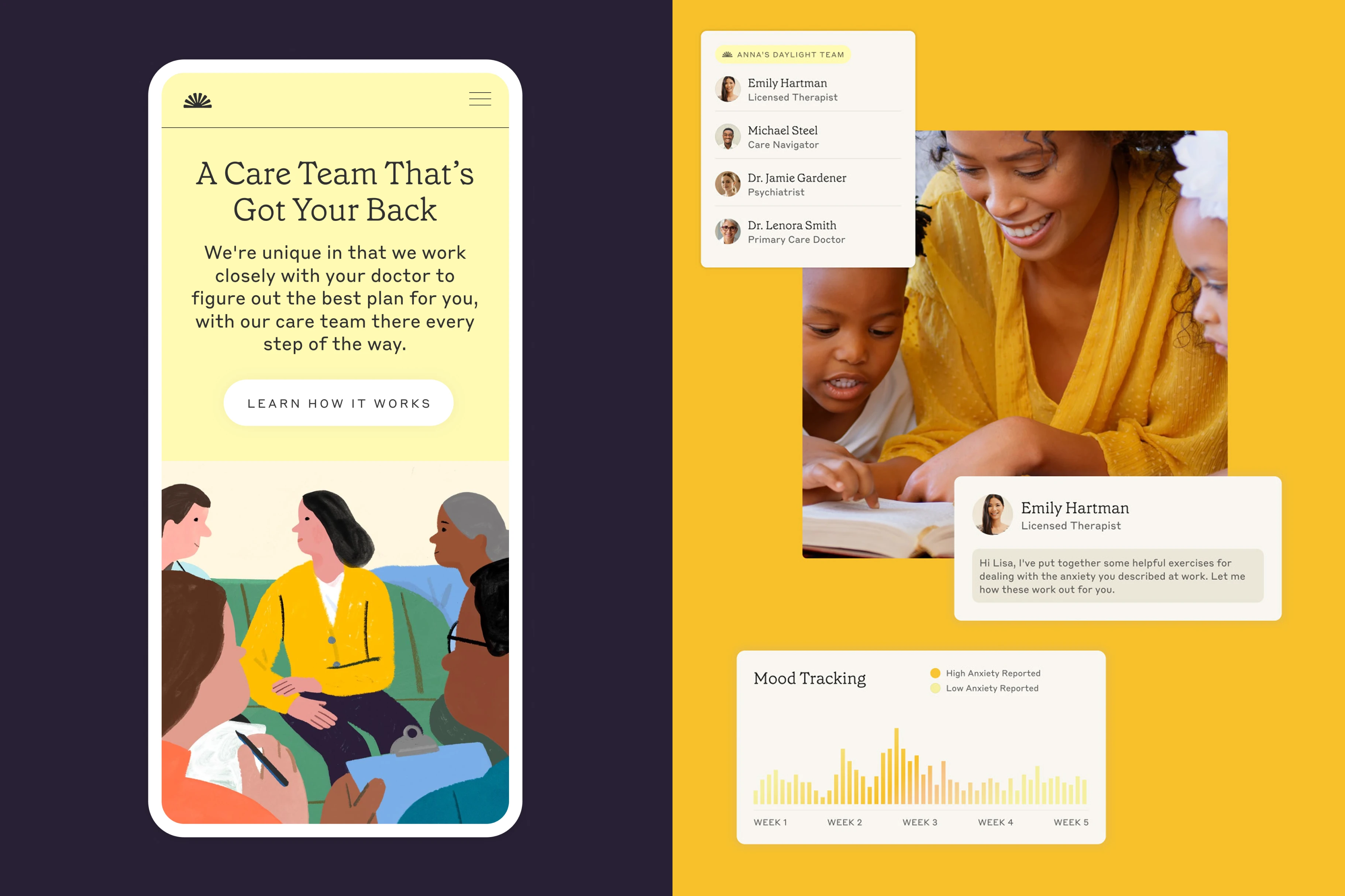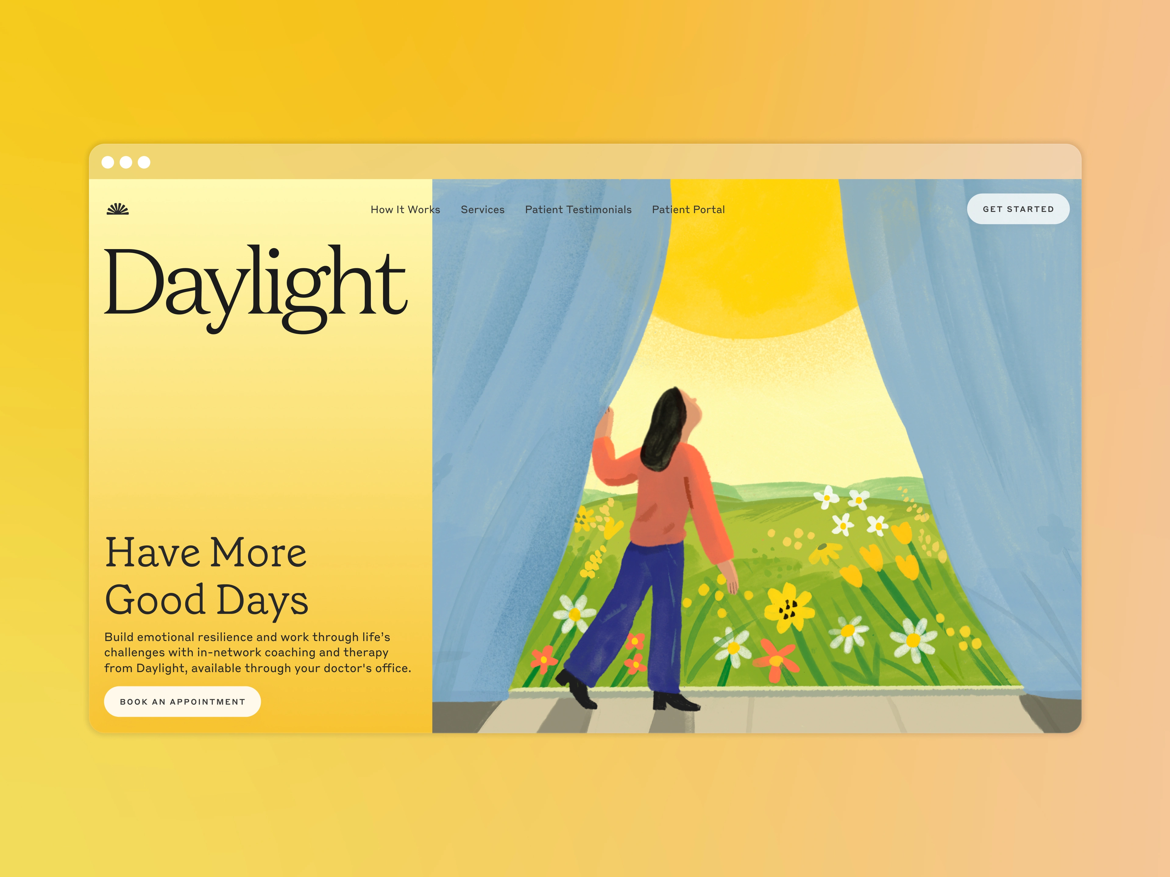 Mental health care has never mattered more—but finding affordable, trustworthy care is a huge challenge for most Americans. Daylight Health makes it easier with an insurance-covered care team that works with your doctor, all in one place. In 2025, I helped bring their sunny, optimistic brand and website to life.