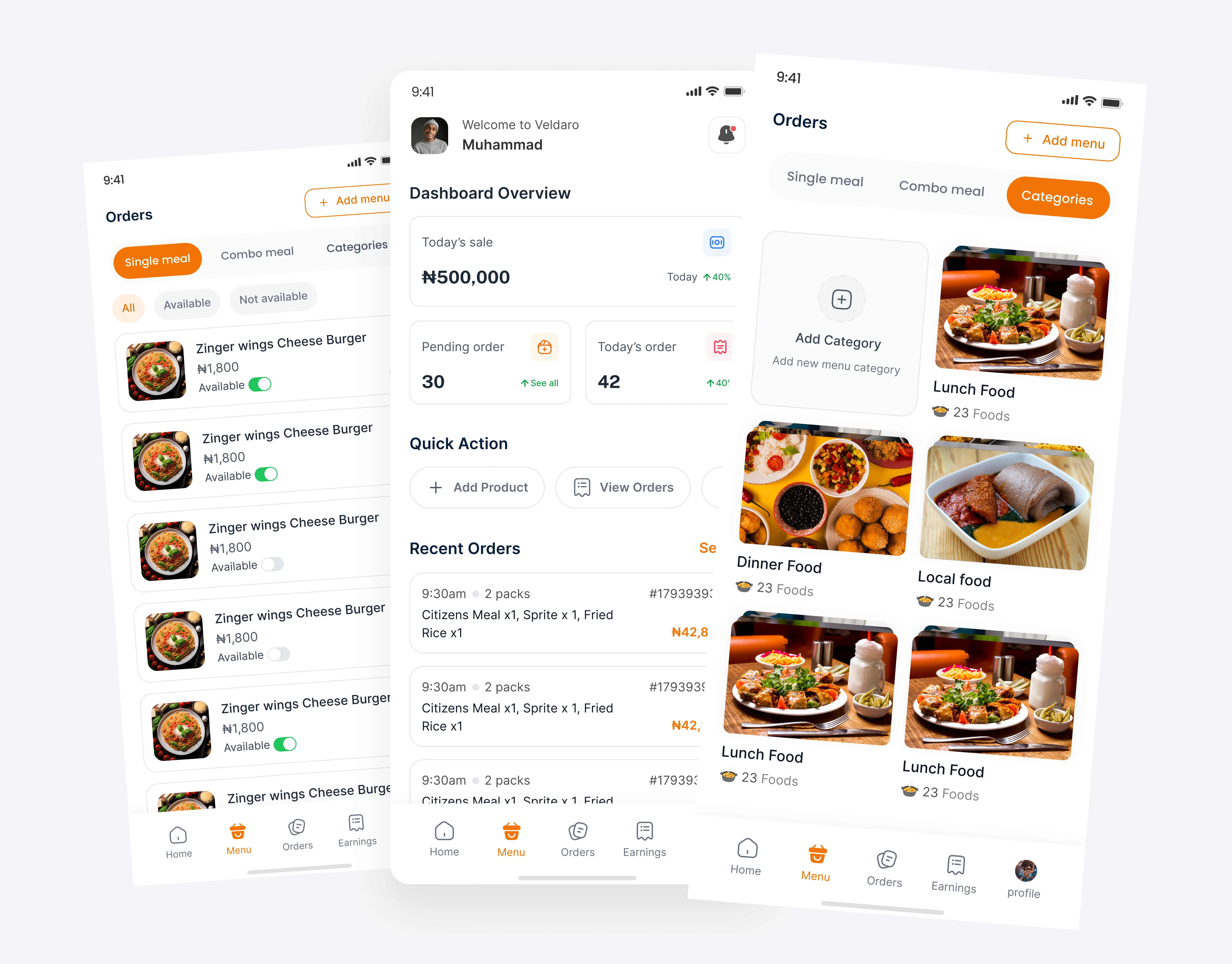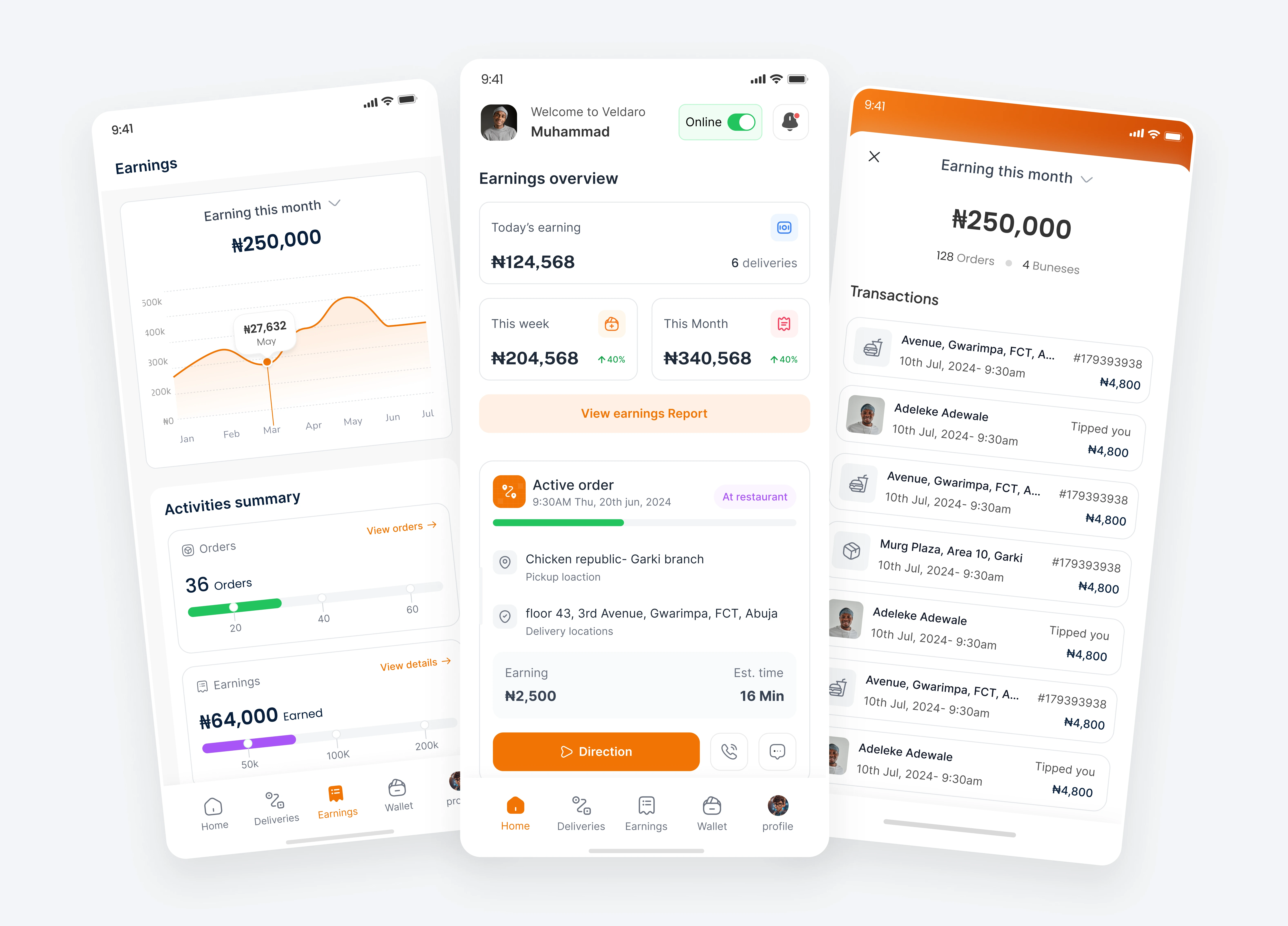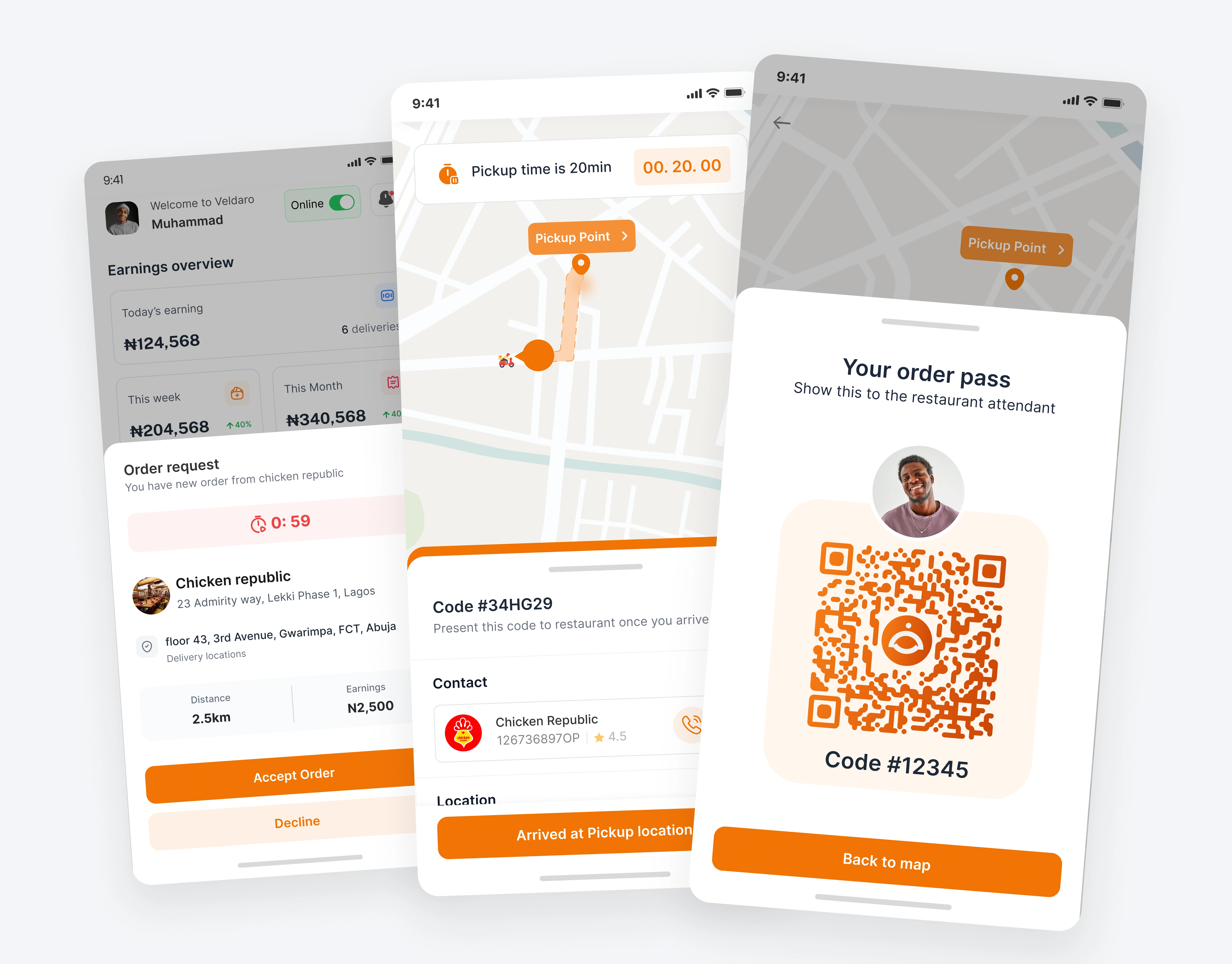 Veldero was designed as a multi-role delivery system, focused on speed, trust, and operational efficiency. The work reflects my approach to building products that solve real problems through clear systems and thoughtful design.