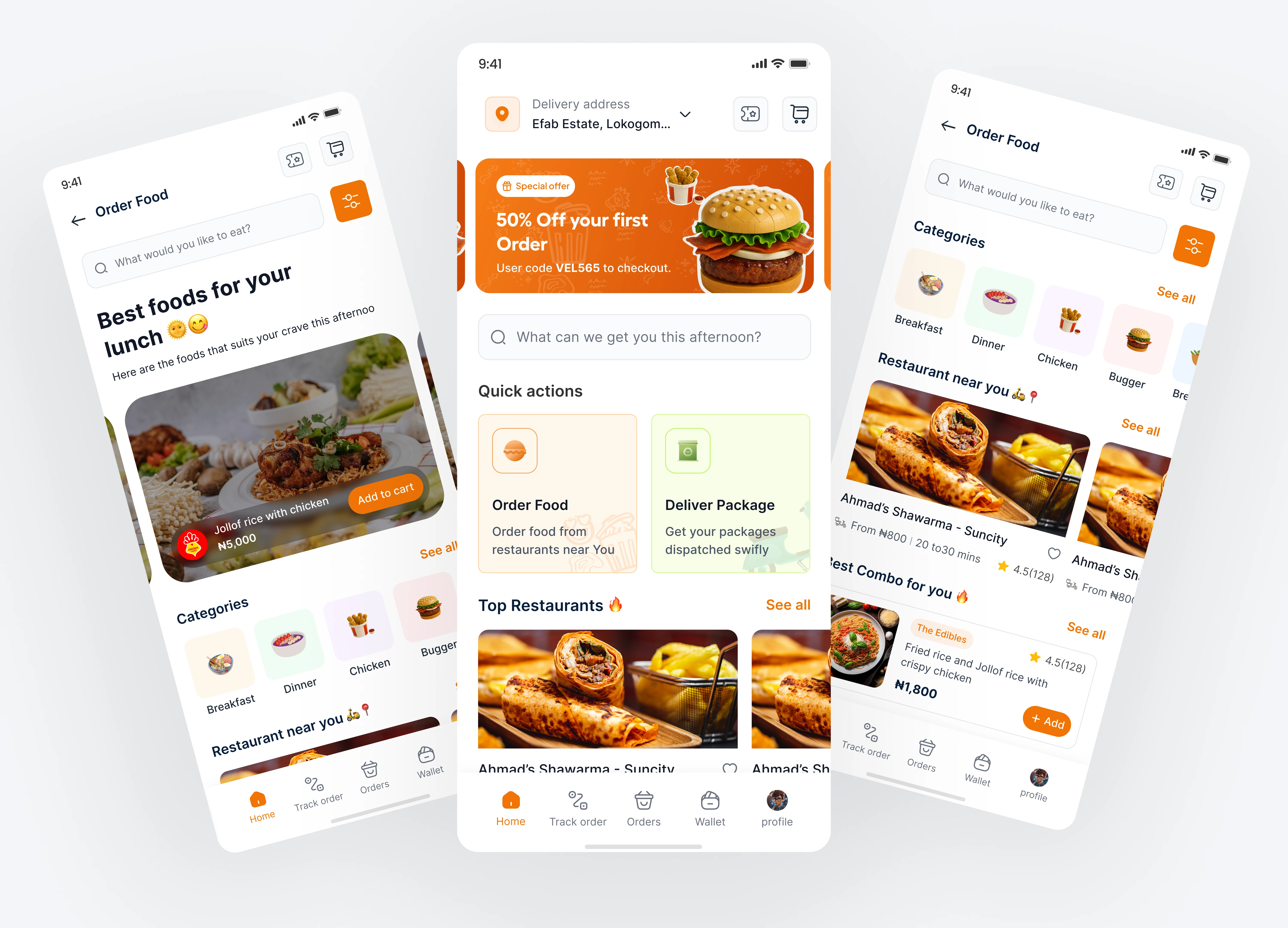 Veldero is a mobile-first food ordering and dispatch platform that allows users to order meals from restaurants and send parcels between locations in one seamless experience.