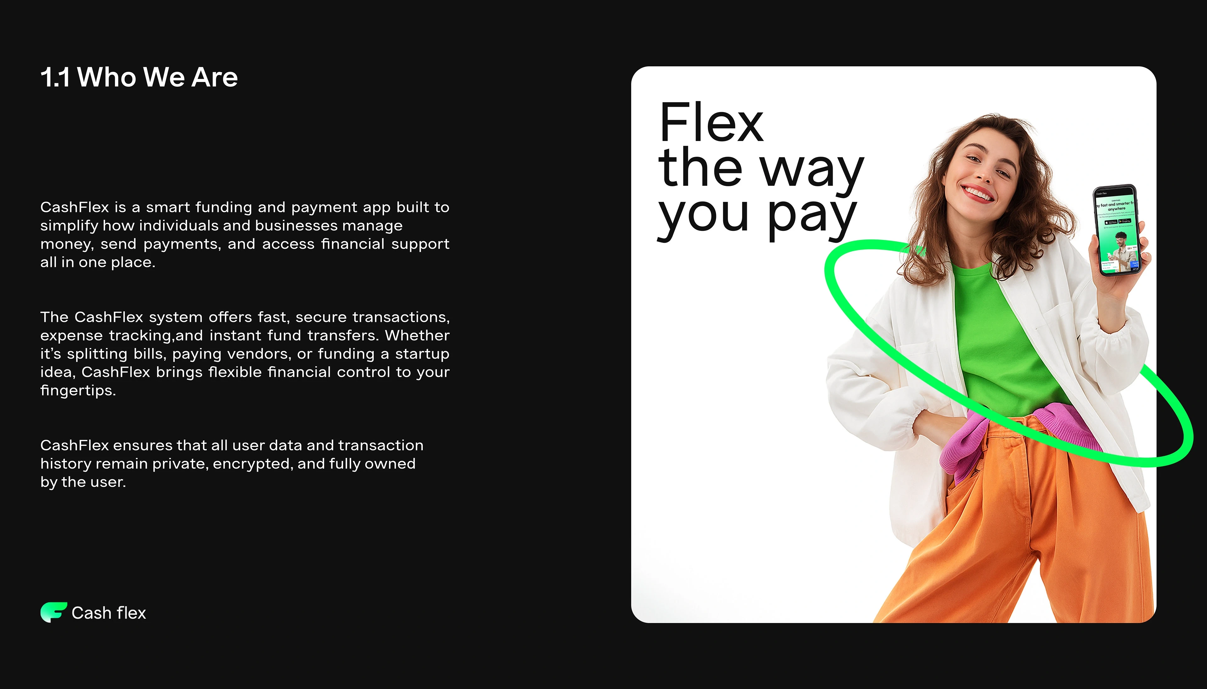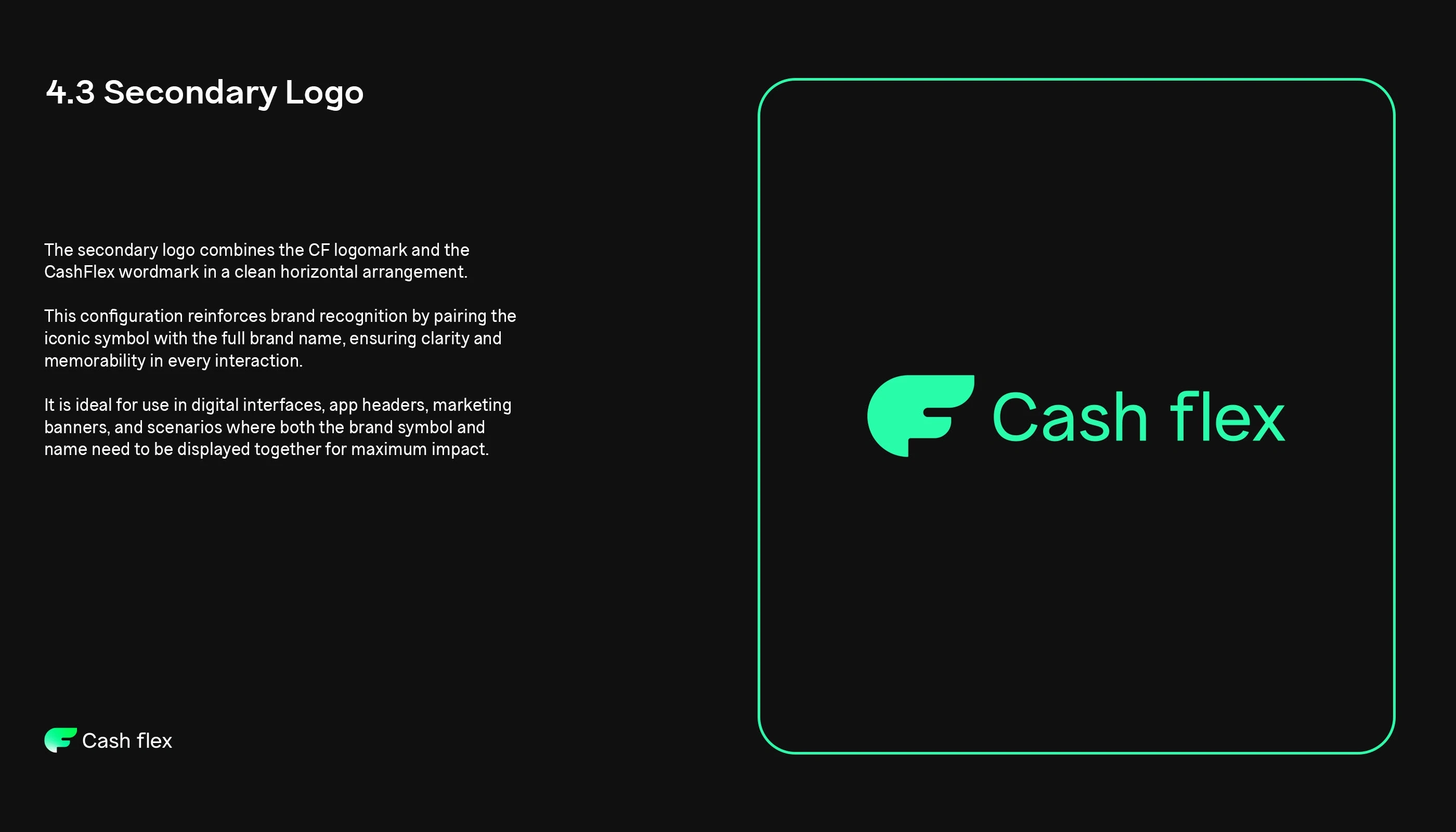 CashFlex Brand Manual defines our visual identity, blending precision with clean, modern design to deliver clarity, trust, and consistency everywhere.