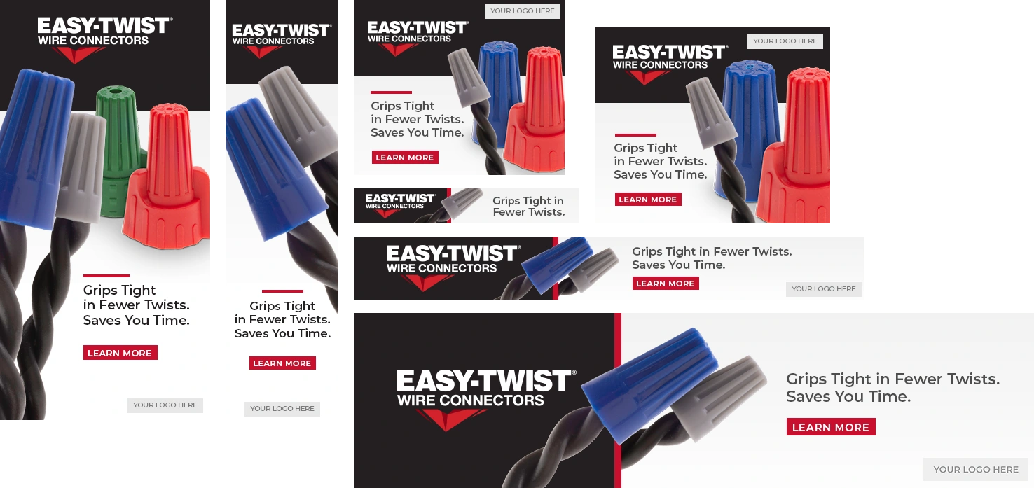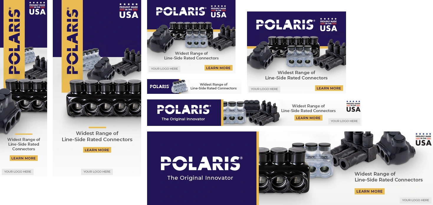 These groups of banner ads were designed for NSI’s many sub-brands to promote brand awareness and attract new or current customers. I had full creative freedom here, but kept a universal look across all brands so viewers may recognize them as being connected through NSI. I also helped elevate their brands by creating the various product groupings that could be reused in other projects.