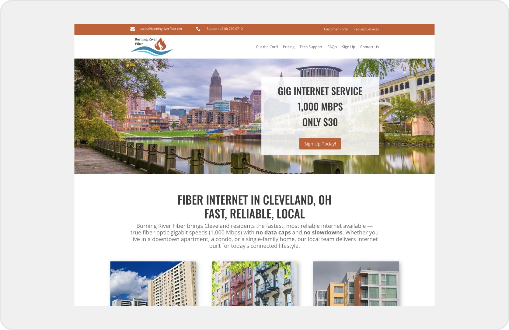 Outcome: A modern, conversion-focused website that aligns the brand with the quality of service Burning River Fiber delivers.
