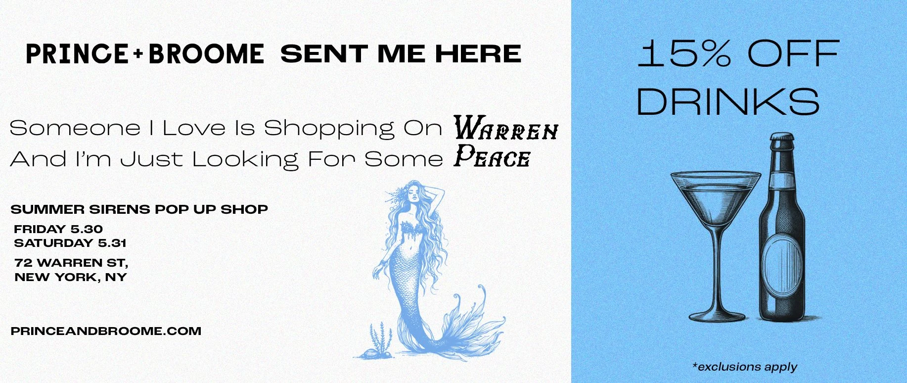Partnered with a local bar, WarrenPeace, in a coupon exchange that drove customers to Prince+Broome all throughout the weekend