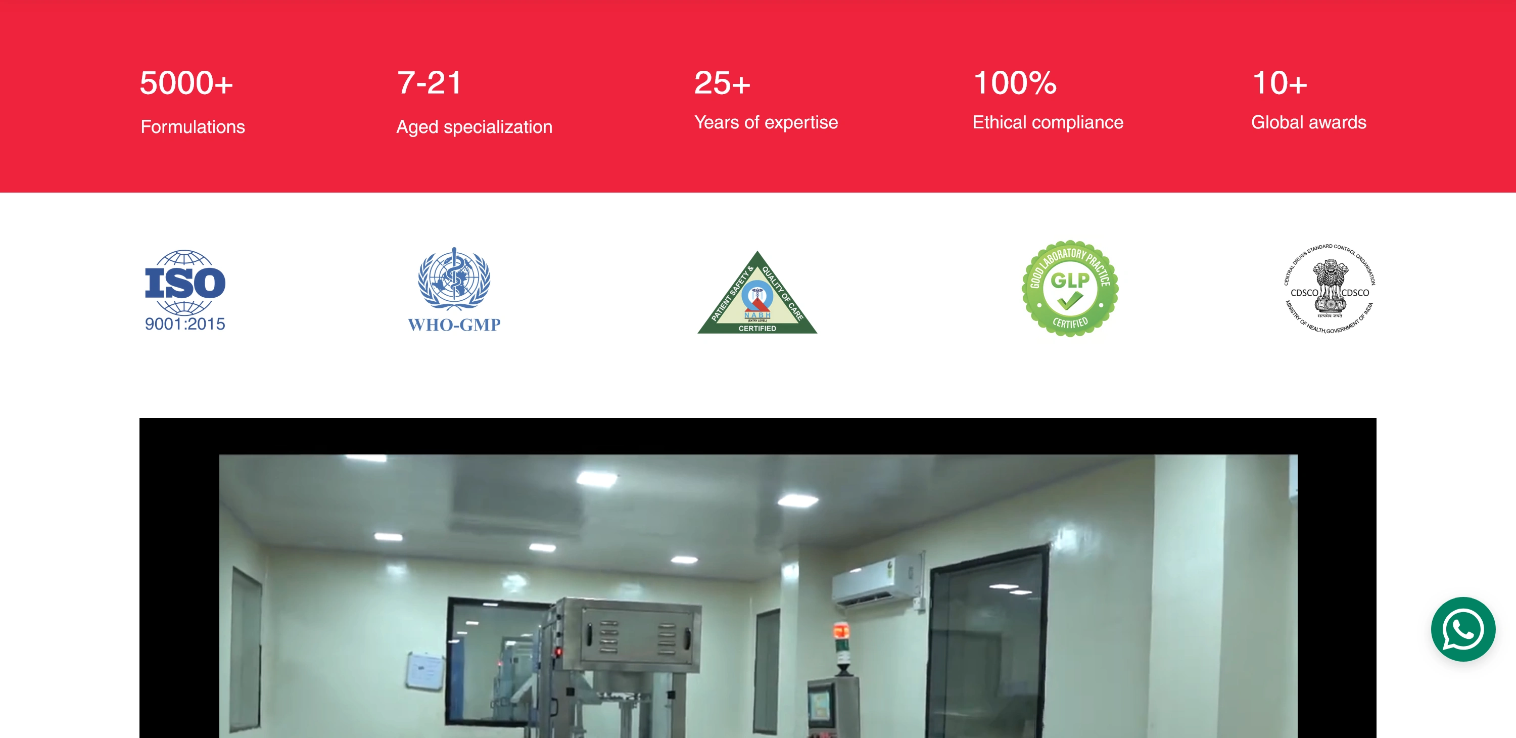 Premium visual system + 360° website established "clean pharma manufacturing" as an instant mental benchmark vs. generic pharma companies.