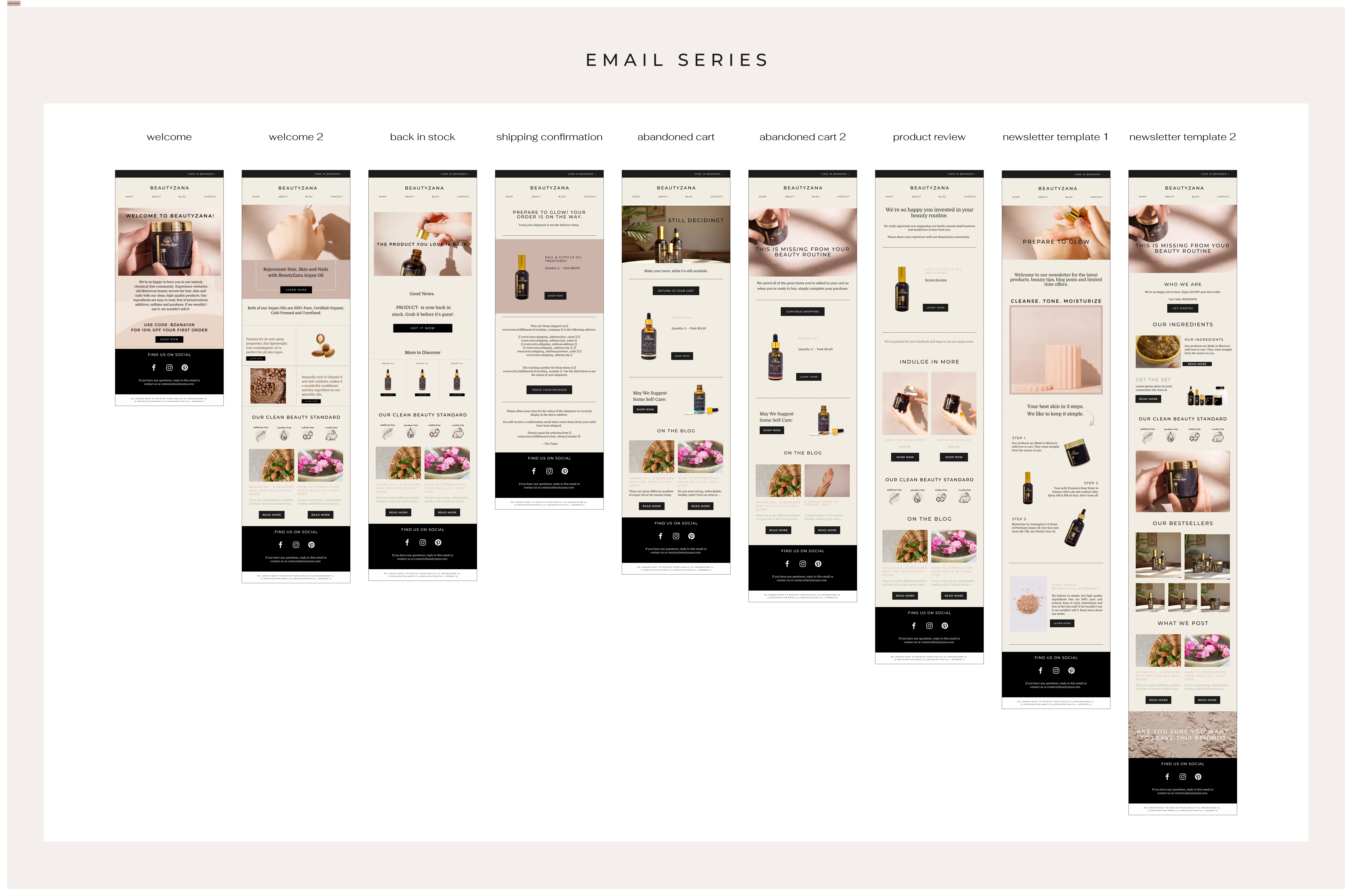 Created an E-commerce welcome email series flow design and automation with branded assets and template deliverables. Integrated client's Shopify site to Klaviyo