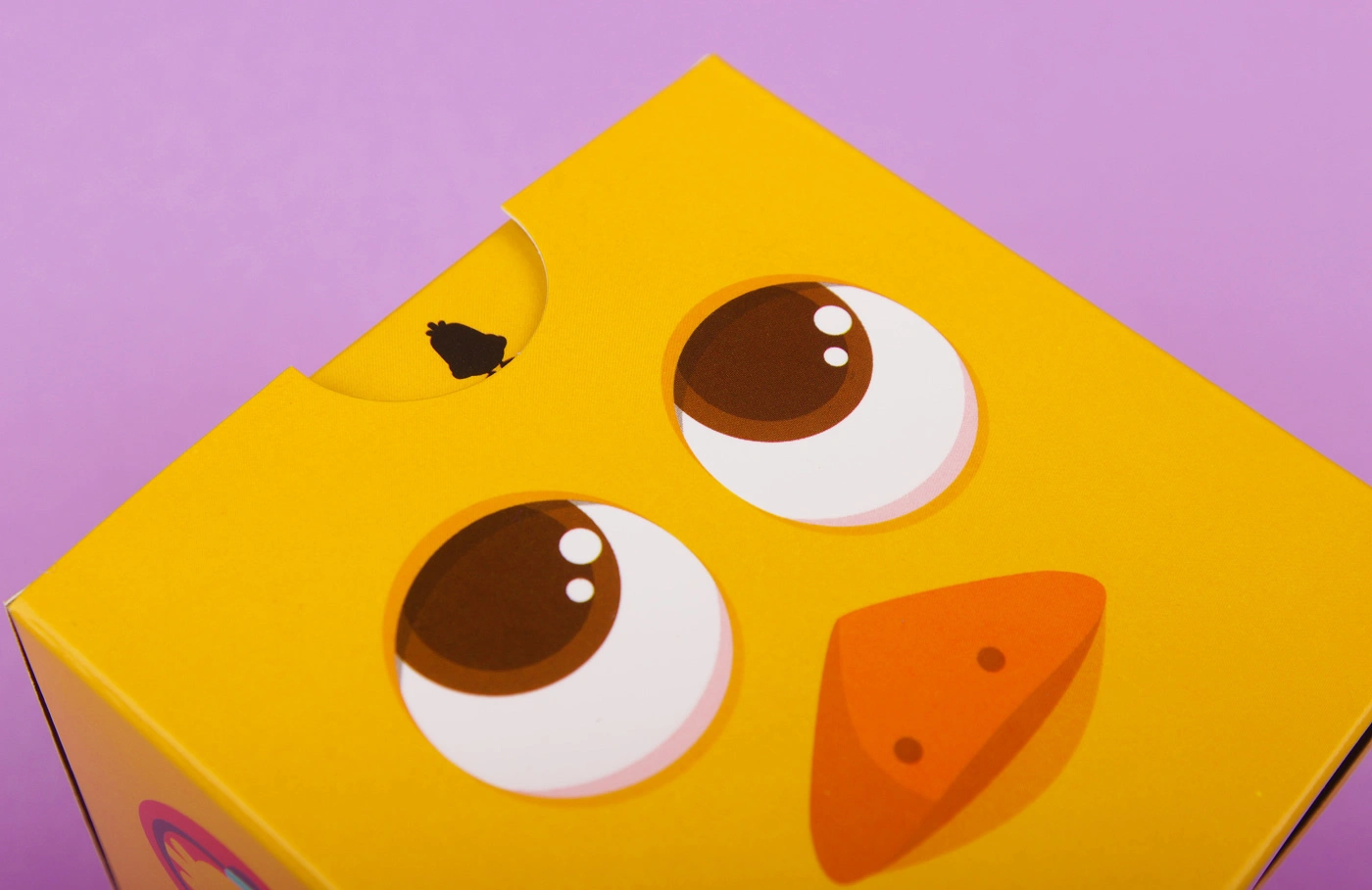 I designed a square collector box with one goal. Make people react before they even touch the product. No patterns. No noise. Just two sleepy eyes staring back at you, introducing Mosaad, the duck who became our signature character.