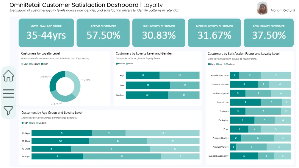 Age-Based Insights: Discovered that the 35-44 age group represented the most loyal segment, requiring targeted strategies for other age groups.