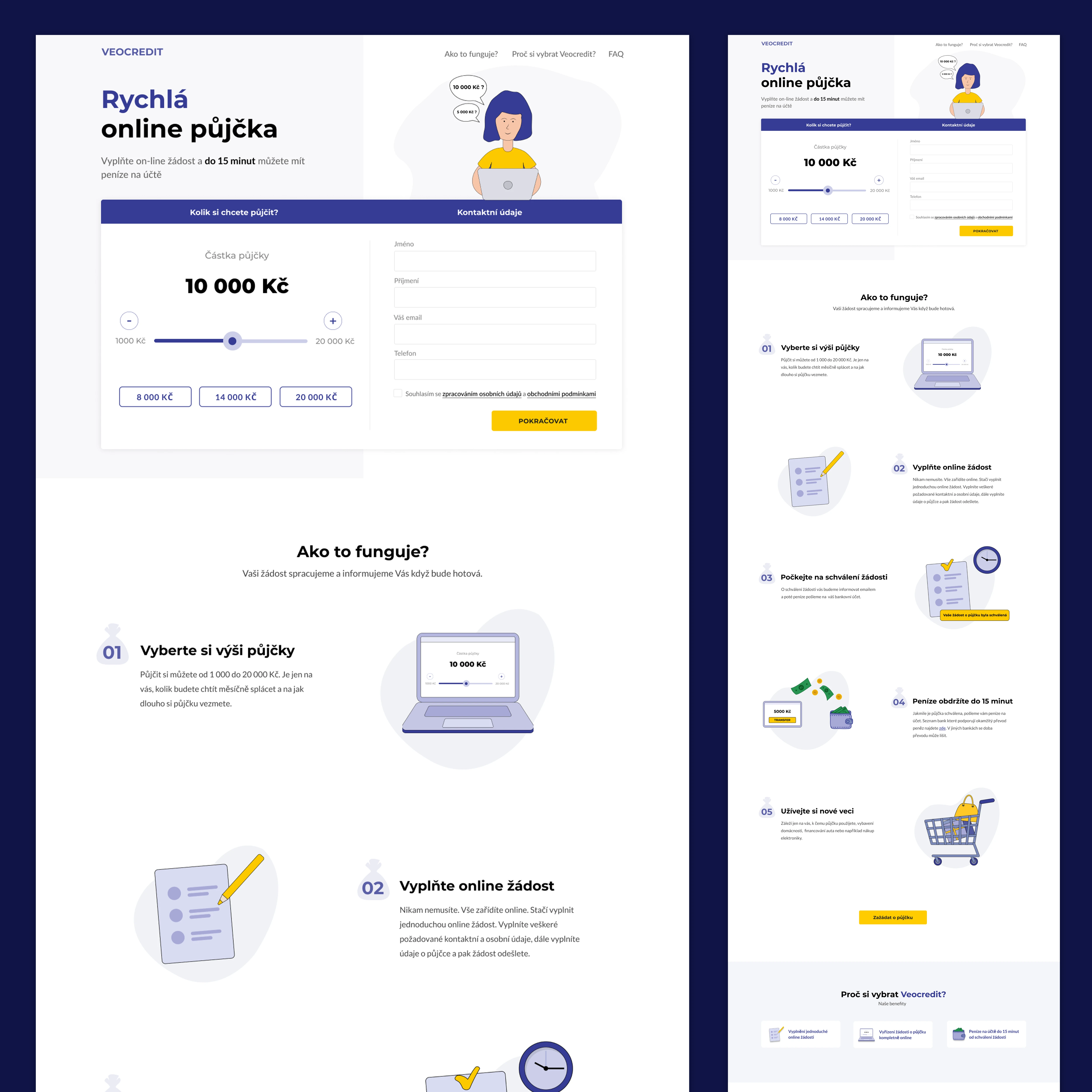 Designed and developed a website and brand identity with illustrations for Veocredit, enhancing their online presence in the finance and loans industry.
