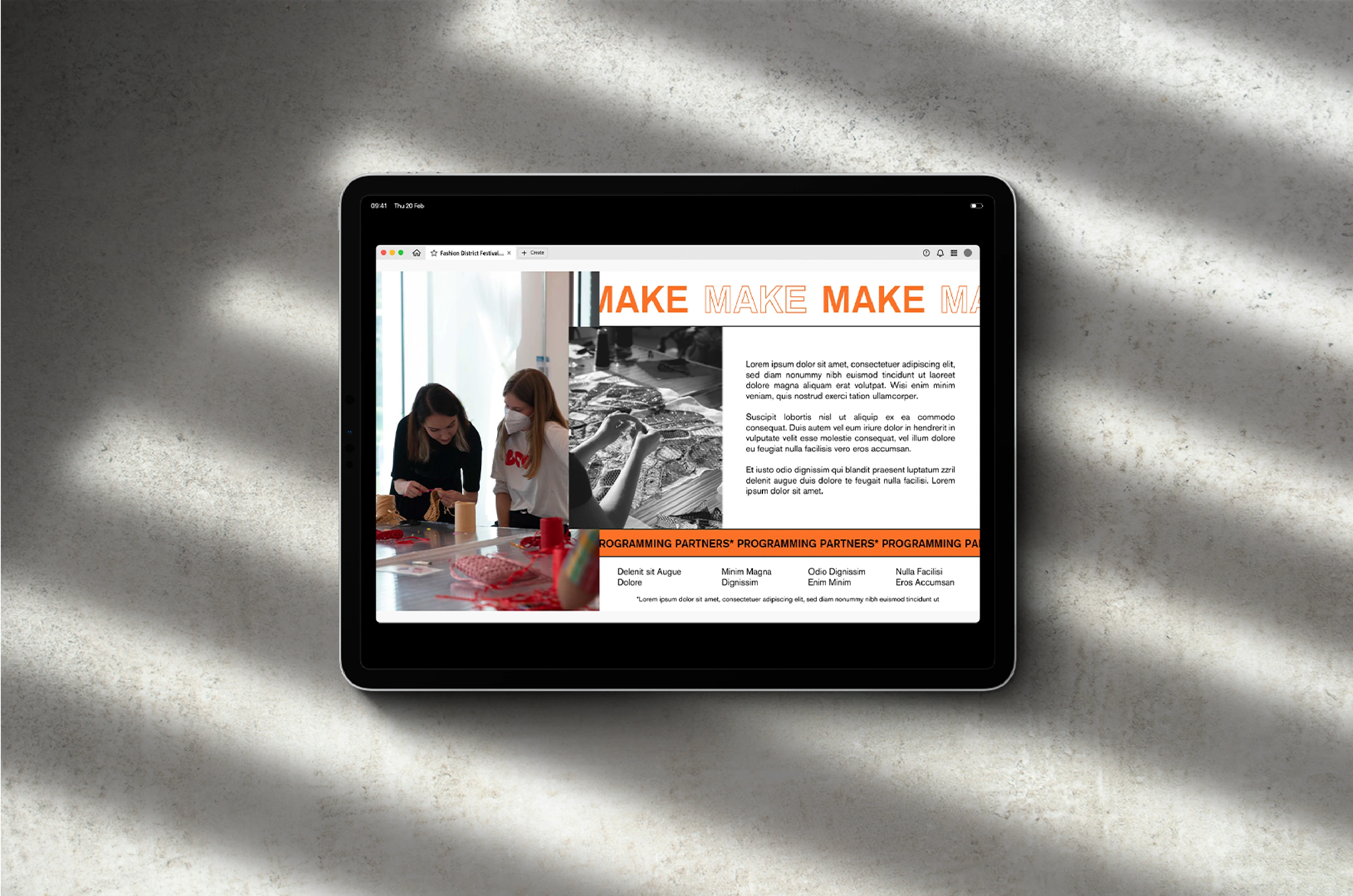 Context: In 2023, Fashion District at London College of Fashion hosted the second Fashion District Festival at Spitalfields. I created this presentation deck to attract and create buy-in with over 150 organisational partners and individual collaborators, including Spitalfields, Depop, and Innovate UK.