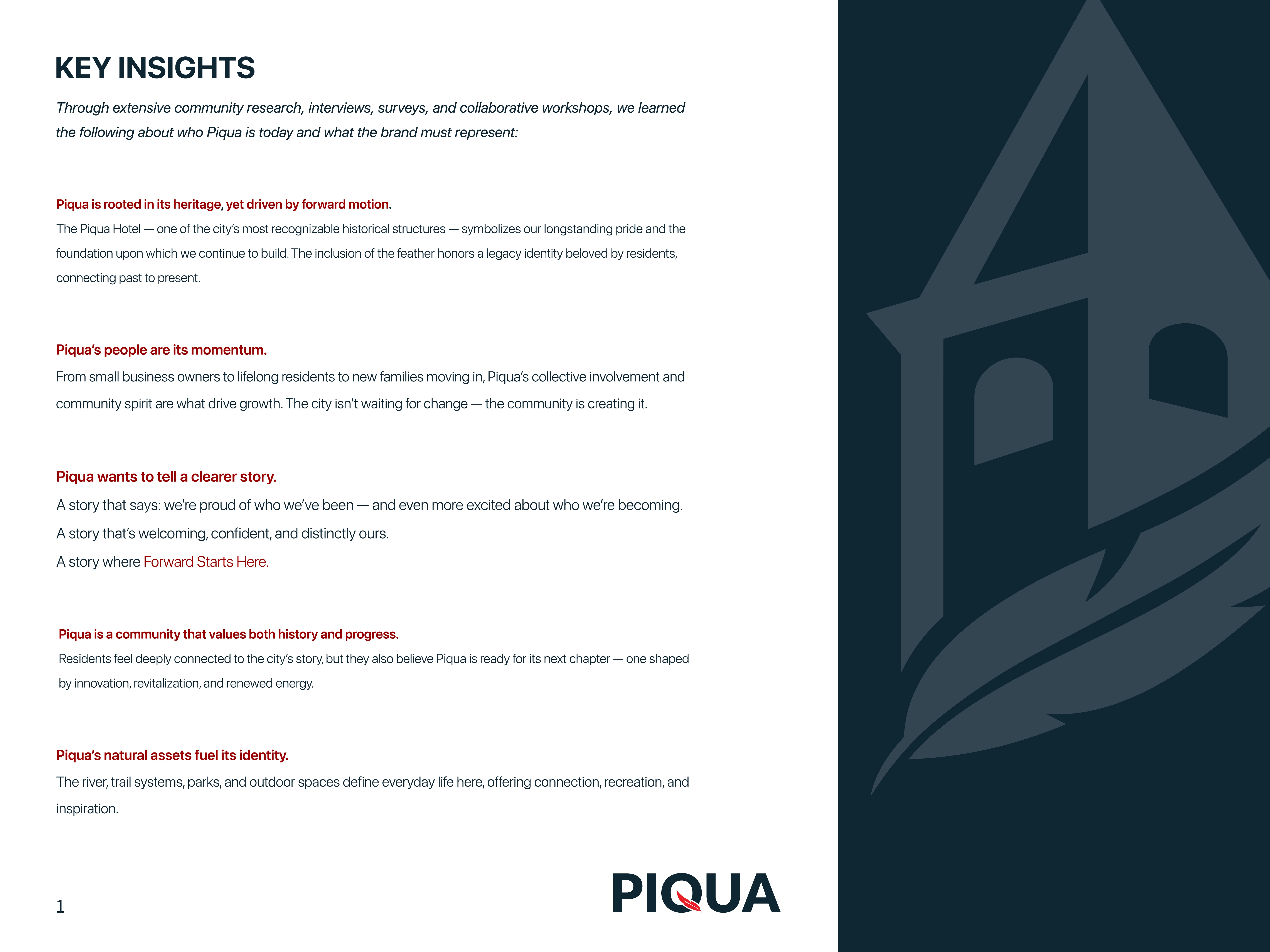 The City of Piqua’s rebrand was an opportunity to celebrate a community with deep historical roots while positioning it for a confident, forward-thinking future. As a city known for its strong architectural heritage, natural landscapes, and close-knit culture, Piqua needed an identity that honored where it came from while reflecting the momentum of where it’s headed. This project led to the creation of a modern, unified brand system that reinforces civic pride, strengthens visual communication, and brings clarity to every touchpoint across departments, public spaces, and digital platforms.