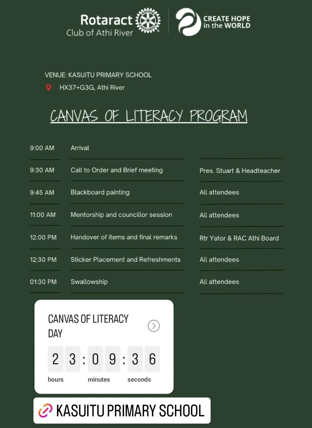 The first in the series was Kasuitu Primary School, which we were able to give a donation of 203 text books, exercise books, sports balls, holler-hoops, a headteachers table, repair and painting of their blackboards and an engaging mentorship session. In addition, we were also able to stick around 150 stickers filled with words of motivation and growth.