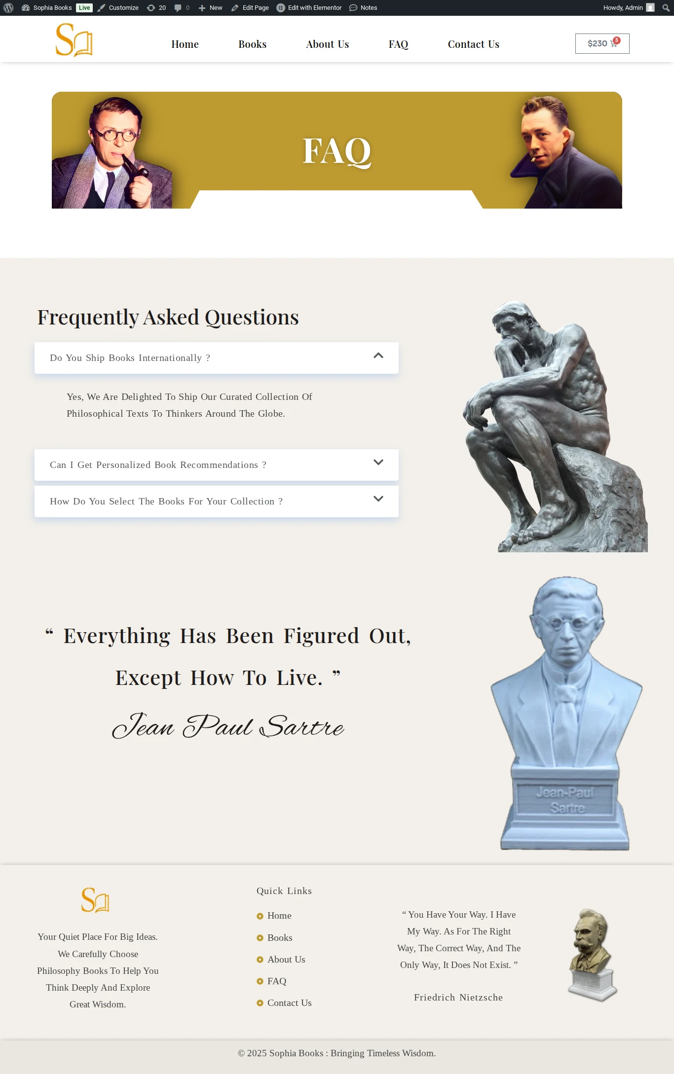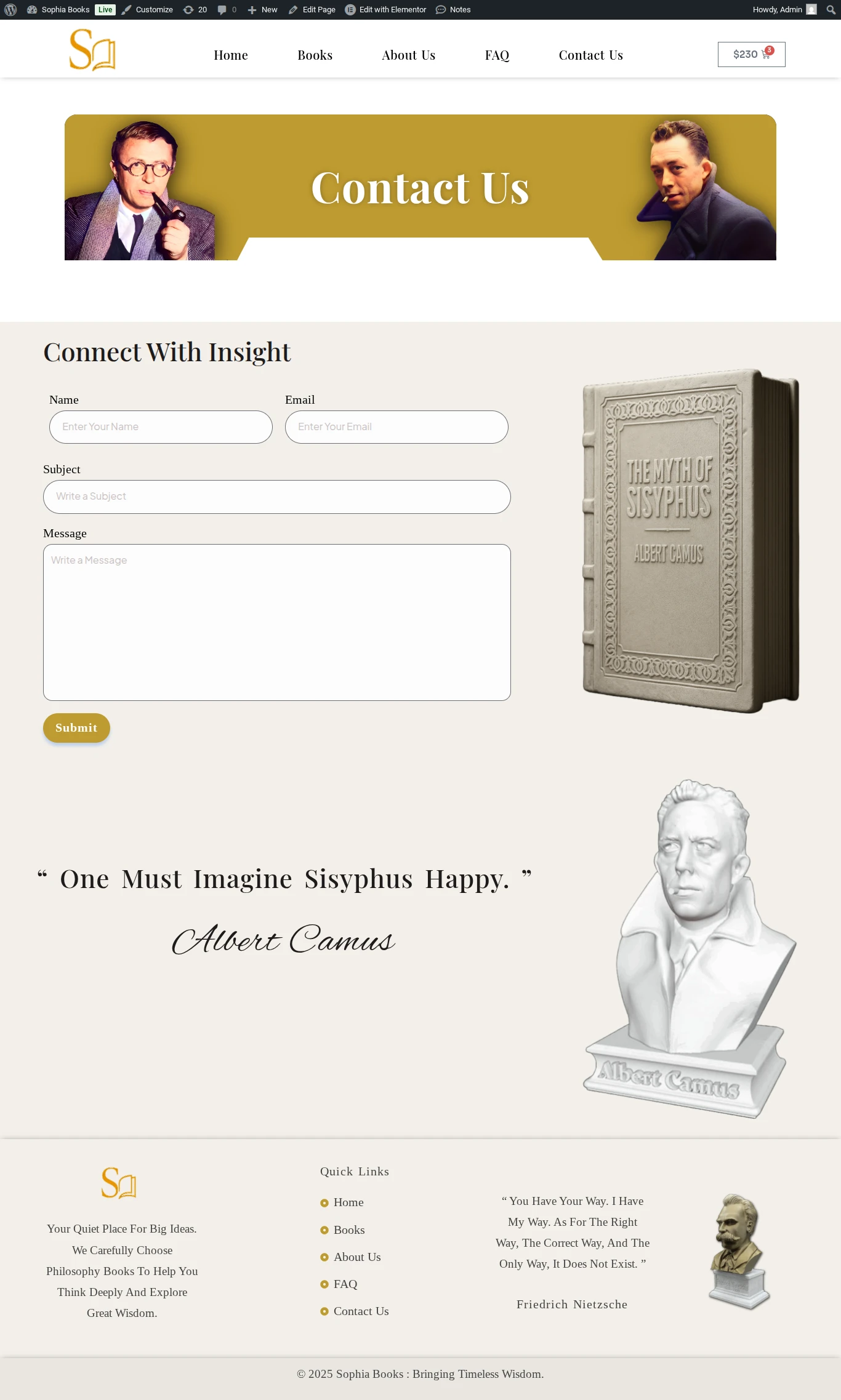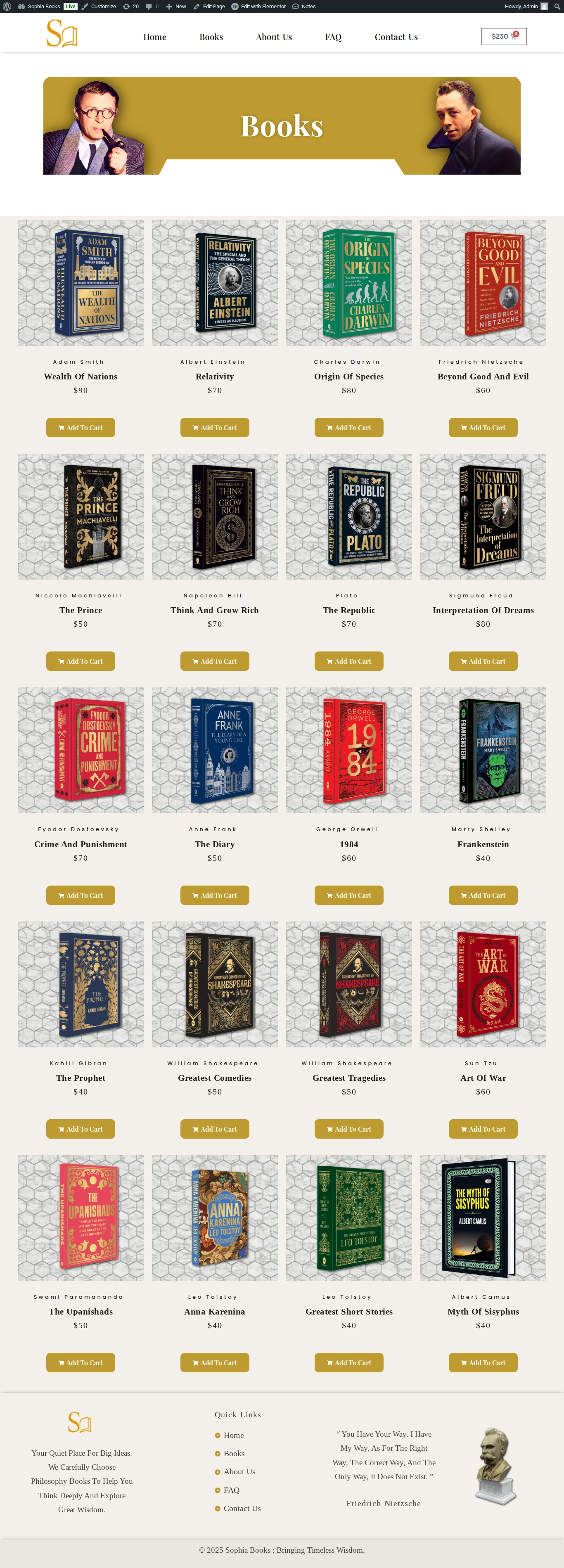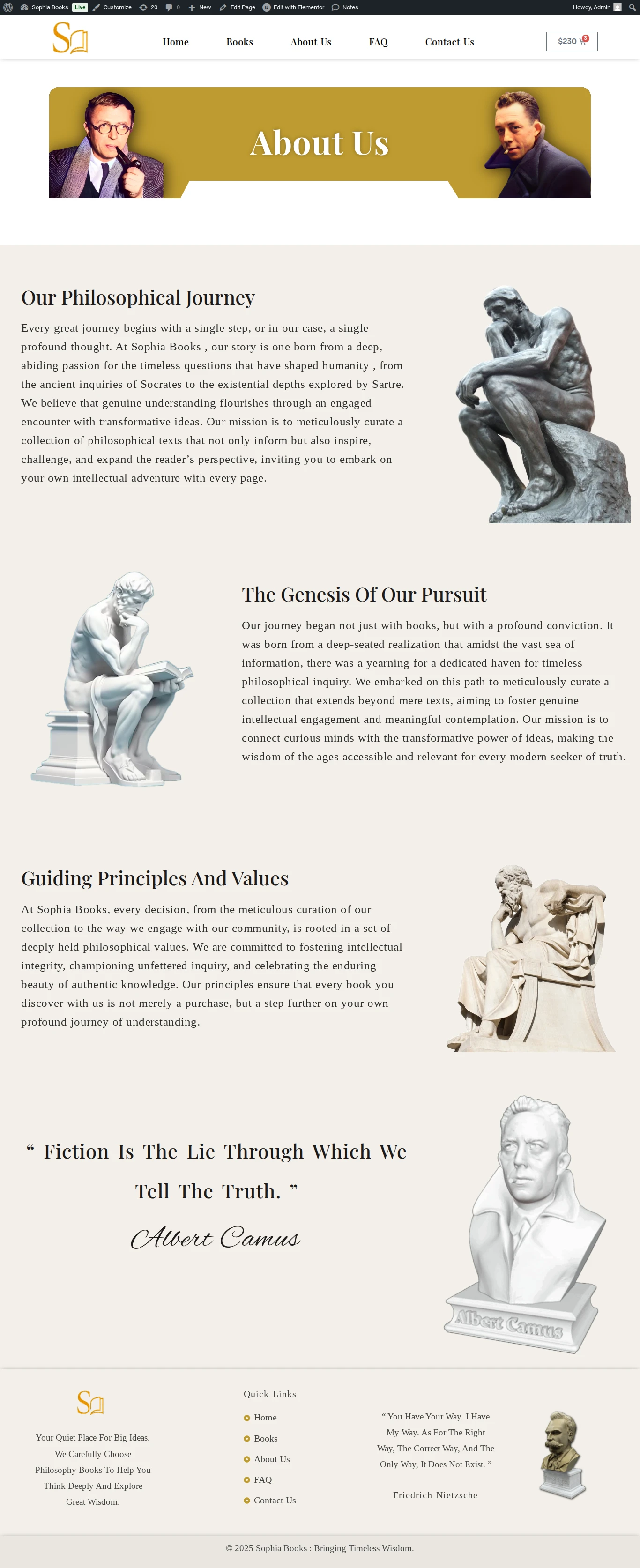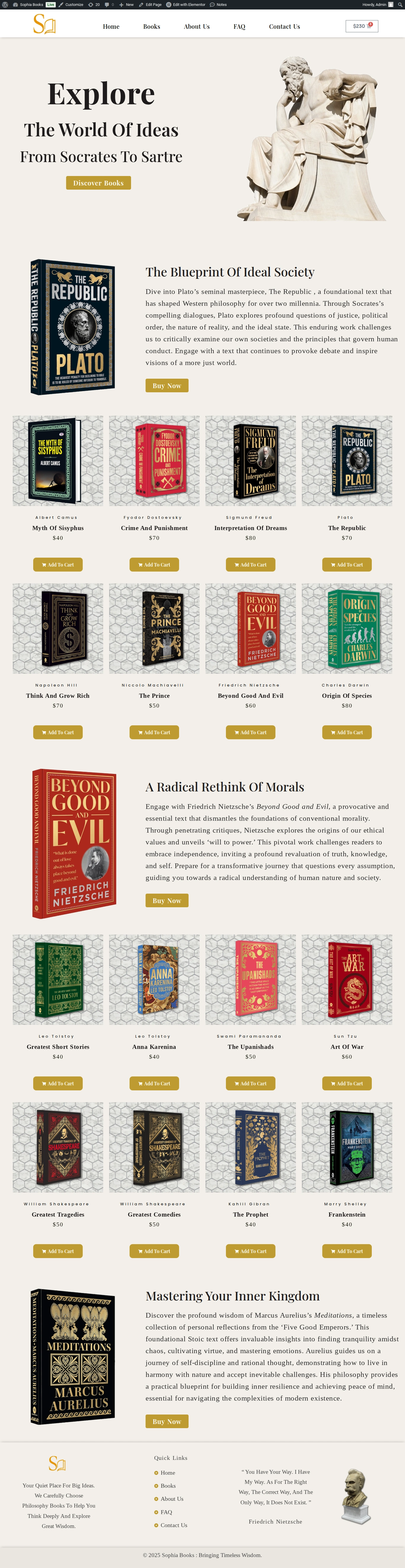 This website was created for Sophia Book Store, a niche online retailer specializing in Philosophical works ranging from ancient classics to contemporary thought. The client aimed to present a curated catalog of titles, educate visitors about each author and concept, and streamline the purchase process for scholars and casual readers alike. The goal was to convey intellectual depth, foster community engagement and drive book sales.