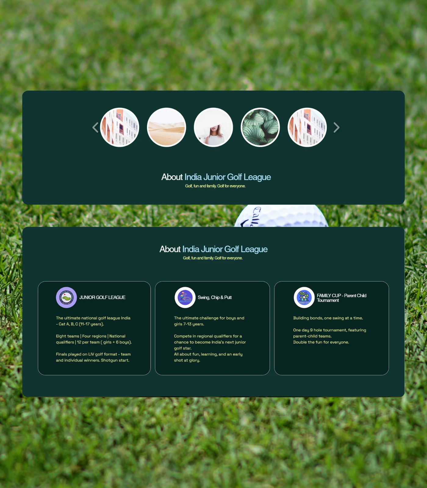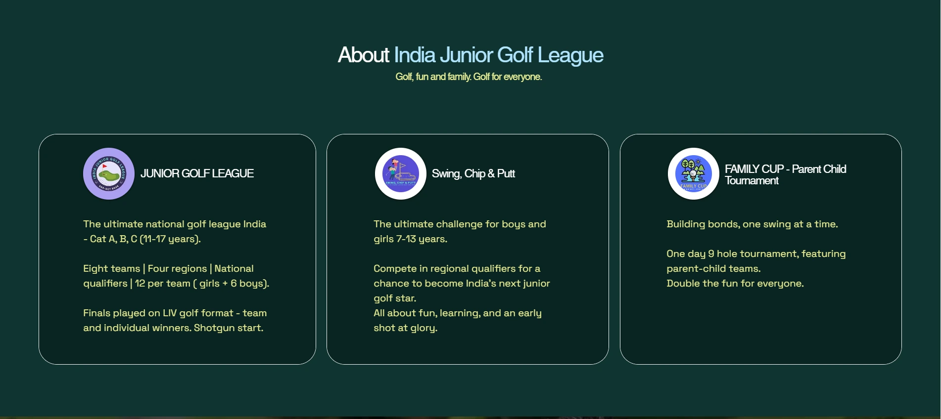 I designed the website for the Junior Golf League to create a dynamic and engaging platform for young golf enthusiasts. The site highlights league activities, player profiles, event schedules, and registration details, while maintaining a clean and sporty design aesthetic that reflects the energy of the game.