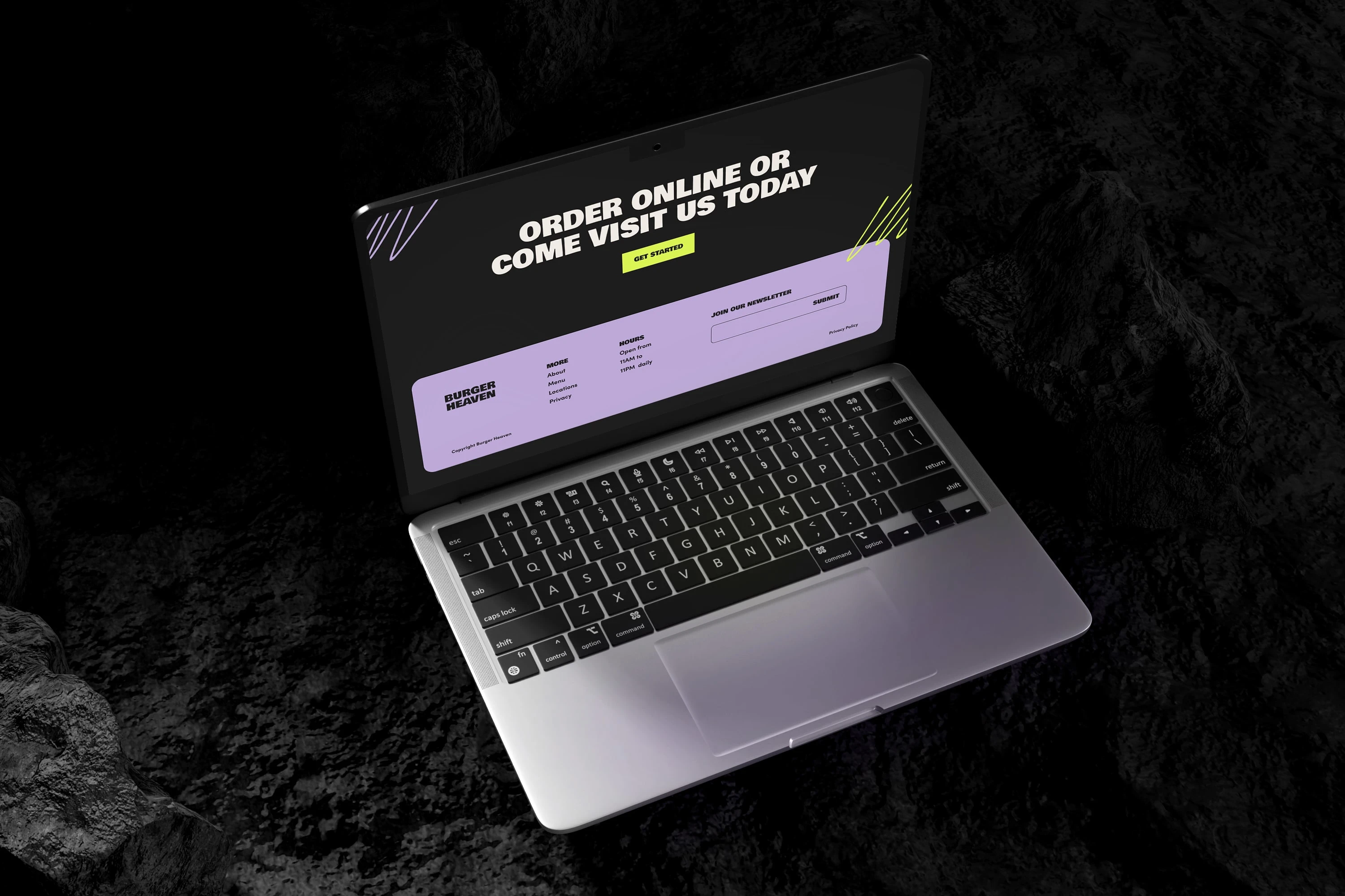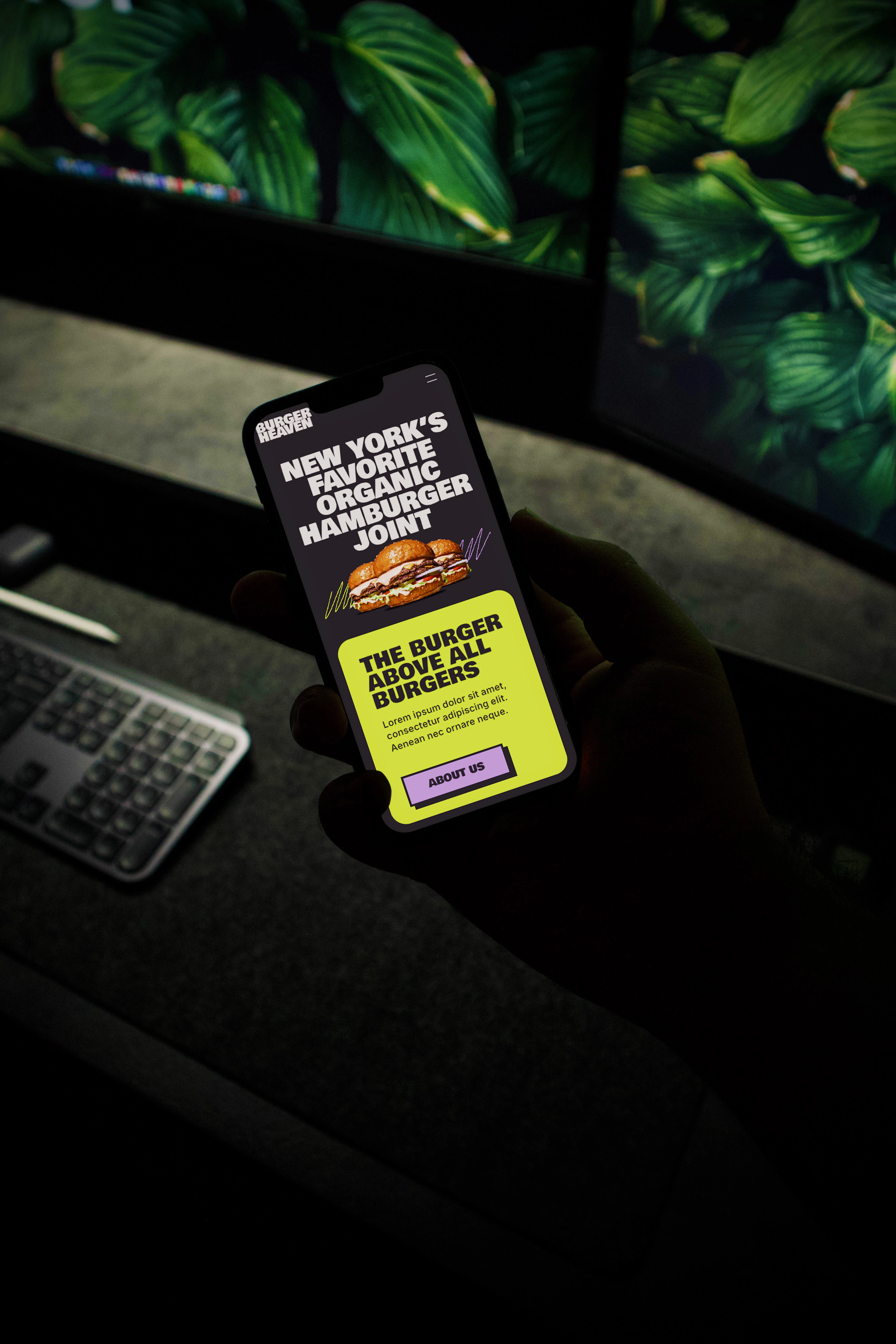Burger Heaven is a conceptual rebranding and website development project for an organic hamburger joint in New York. The project involved taking a static, high-impact design and translating it into a fully functional, live website using Framer. The site features bold typography, vibrant color blocking (Lime Green & Purple), and immersive scroll interactions designed to capture the user's attention immediately.