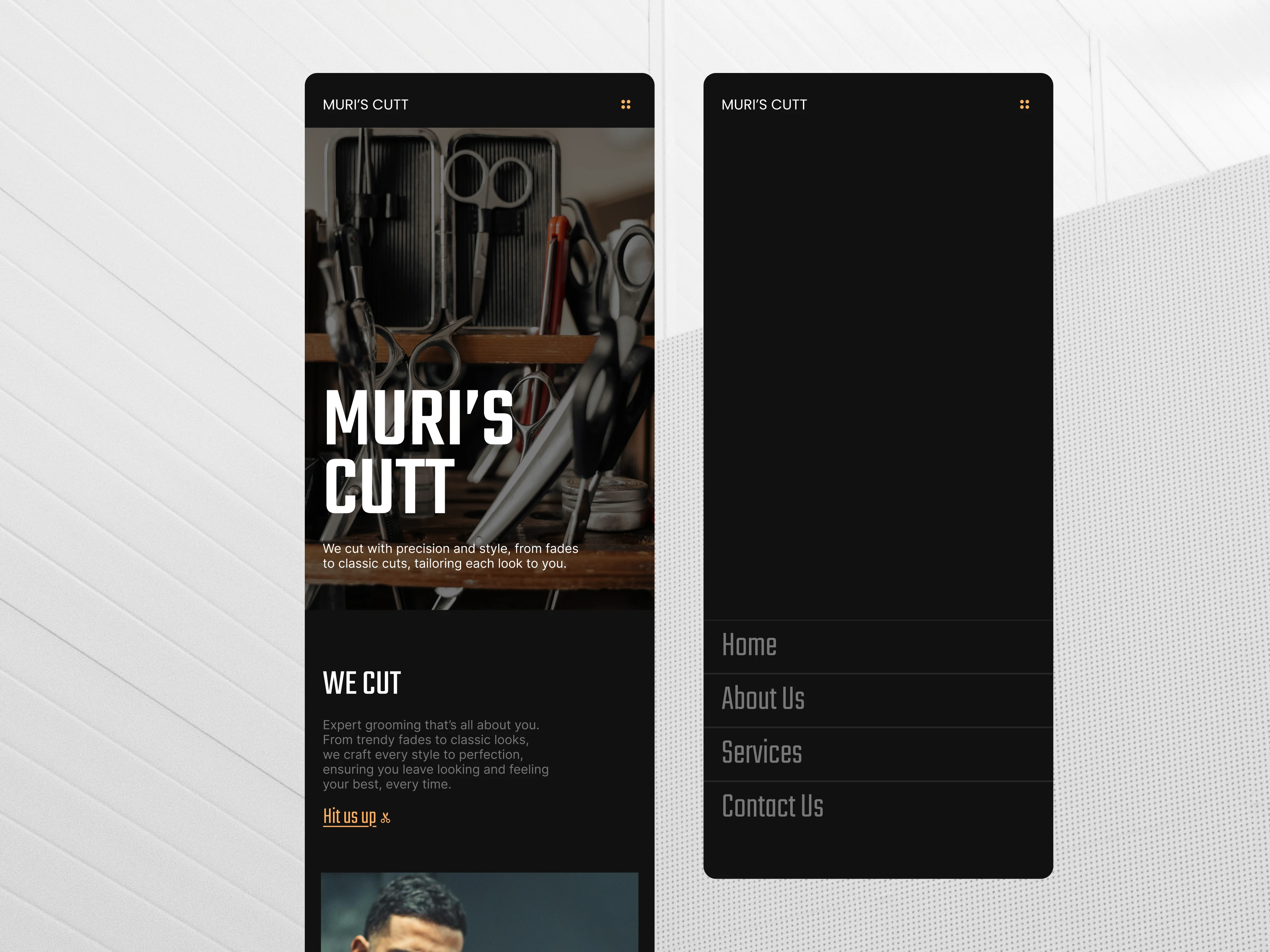 I designed Muri’s Cutt as a barbershop website template for Khaime, a web builder.