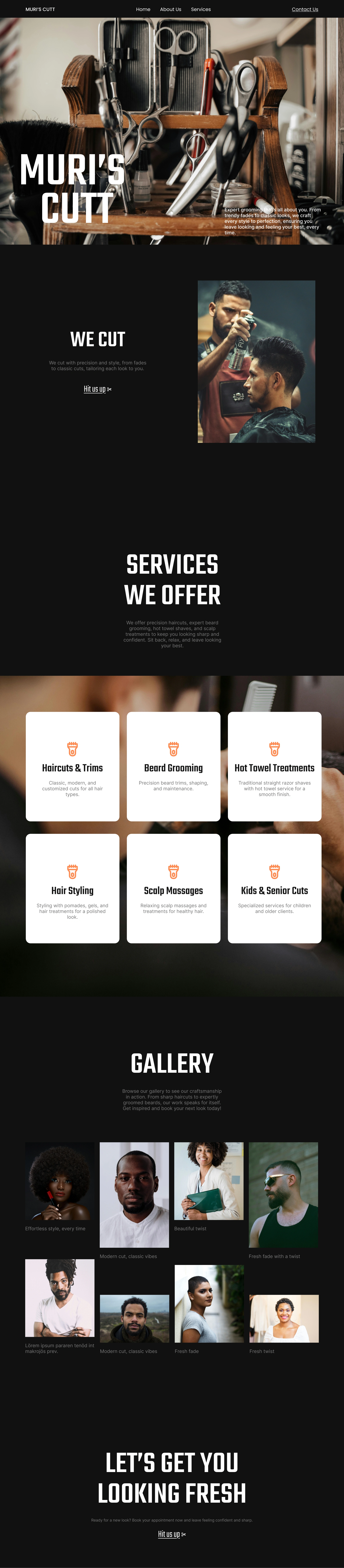 I designed a modern and user-friendly website template for Muri’s Cutt, a barbershop, focusing on a clean layout, easy navigation, and a stylish aesthetic to enhance the customer booking experience.