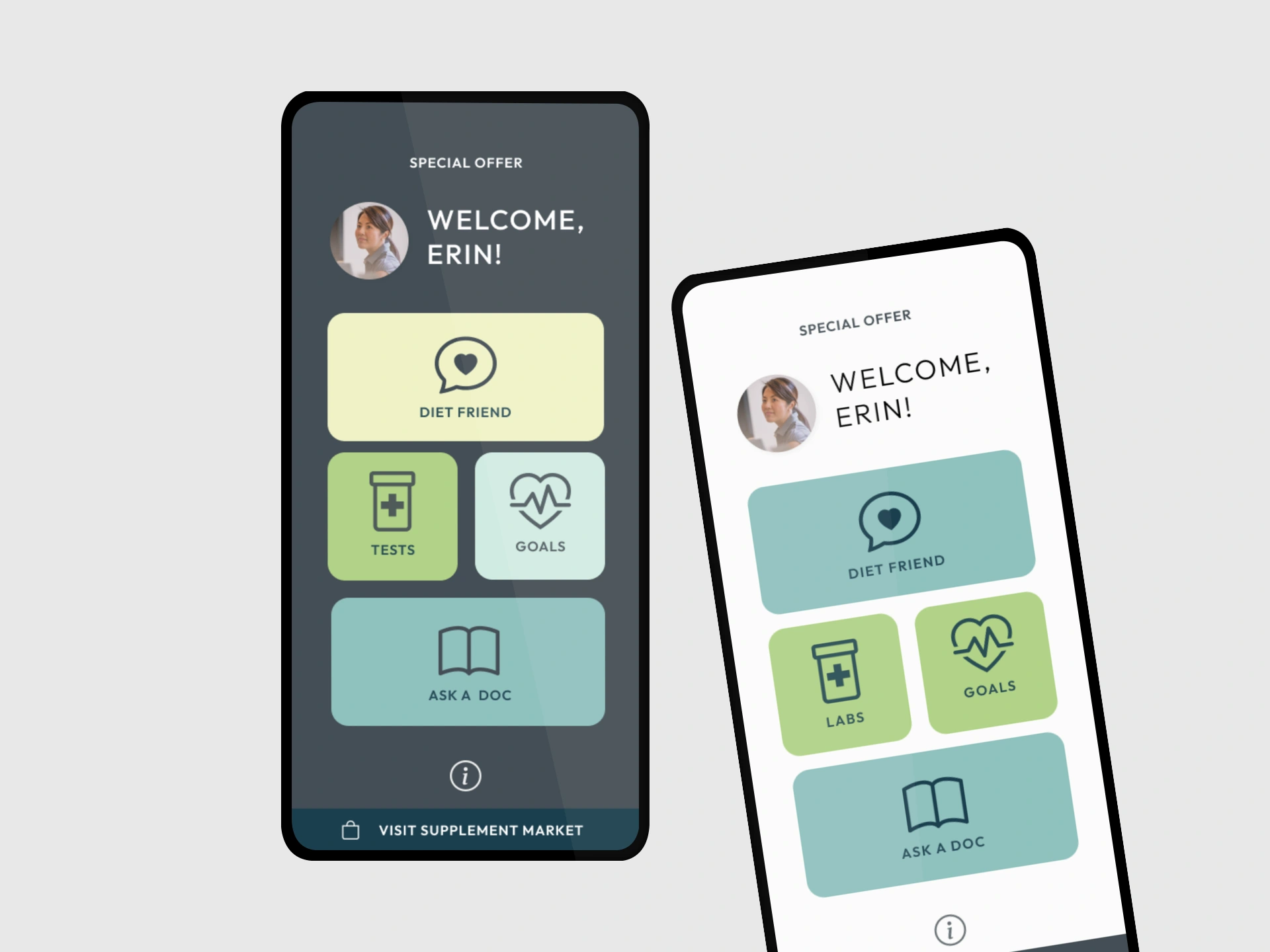 AI-powered app. Uses social media integration to reach user goals. Customer receives lab suggestions based on health goals, advice on diet by their own Doctor.