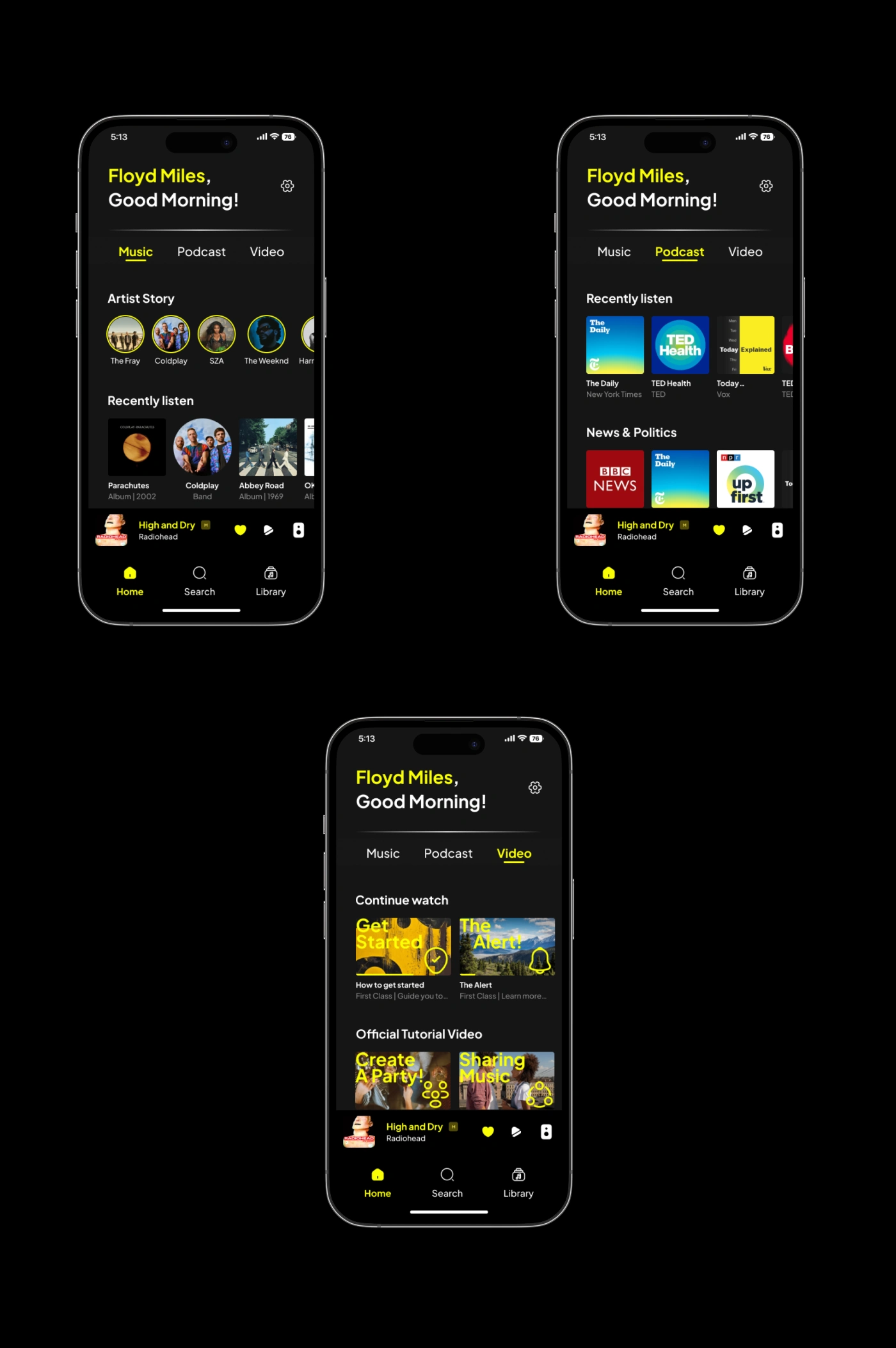 First Class is a concept music streaming app that goes beyond just providing users with a vast library of songs in Hi-Fi quality. It is an app that truly cares about its users' mental health and well-being and brings people together.