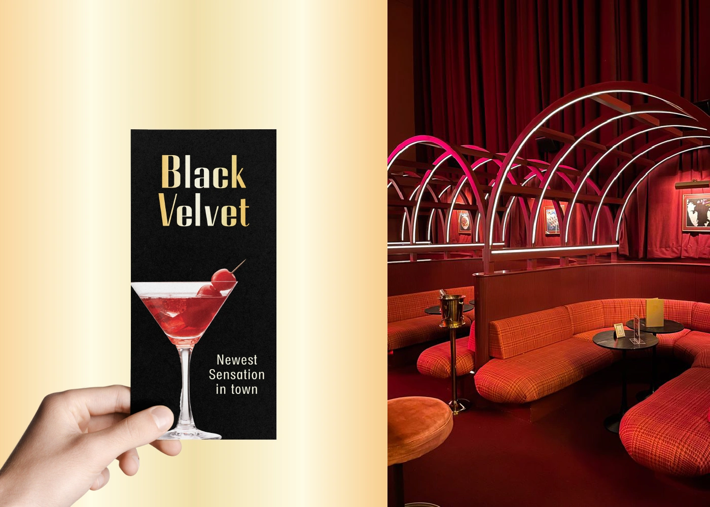Black Velvet is a premier cocktail bar that embodies luxury, mystery, and sophistication. With a striking red, black, and gold palette, every detail is carefully crafted to create an atmosphere of refined elegance.