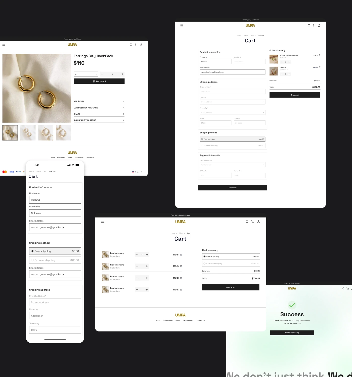 Consistent layouts, clear feedback states, and responsive behavior ensure a smooth and trustworthy checkout experience, from product selection to payment confirmation.