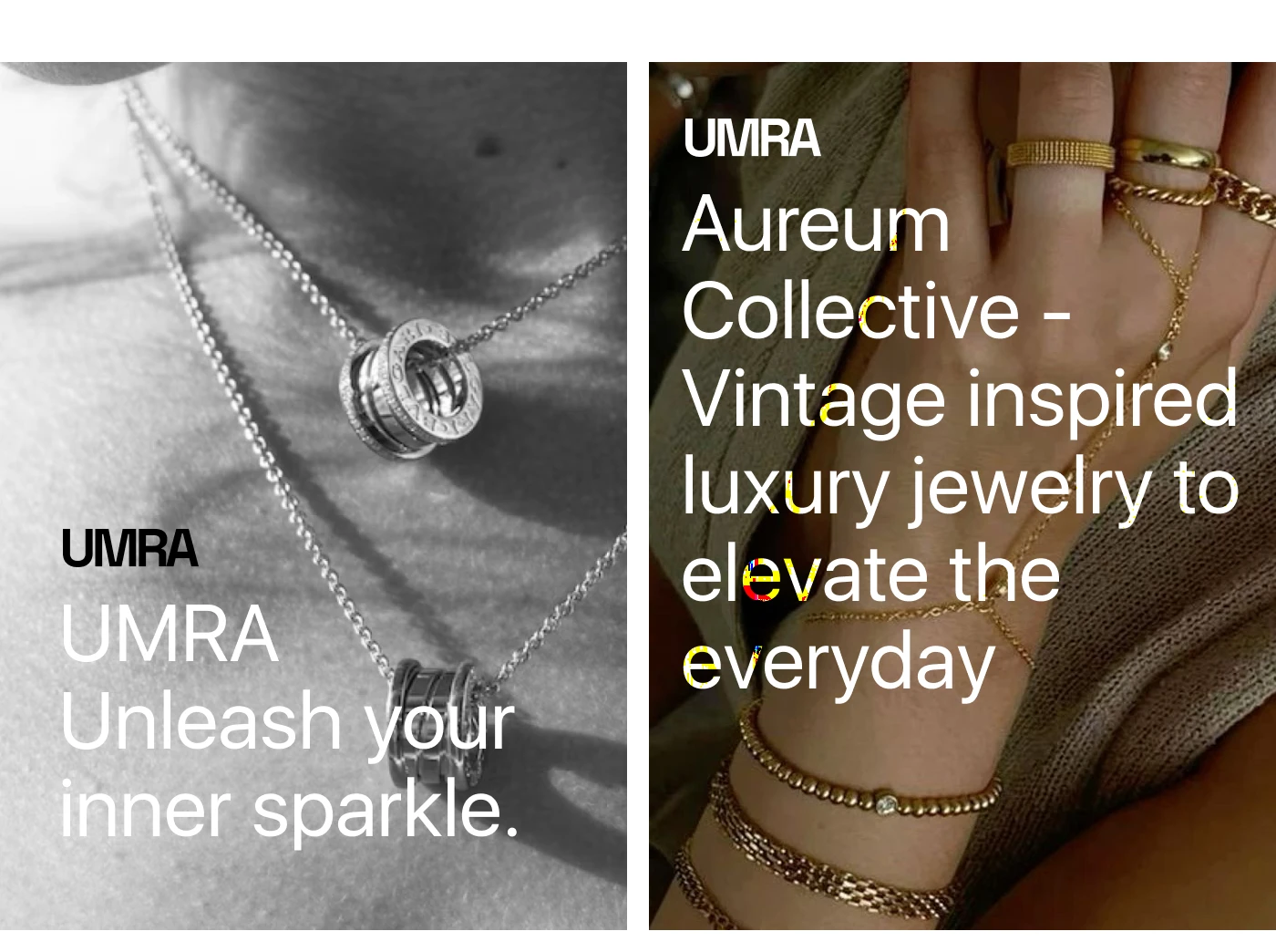 This section highlights key jewelry pieces through a clean, editorial layout that balances typography and product imagery. The design draws attention to craftsmanship and detail while guiding users toward discovery and purchase with a clear call to action.