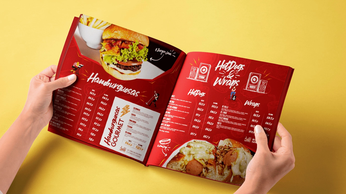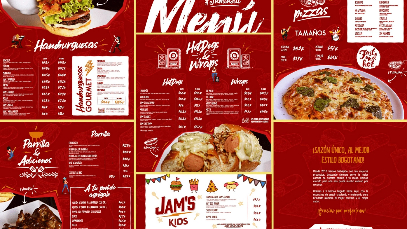A friend of mine and his wife founded a new fast food restaurant in the north end of the city, and they wanted their brand to represent them both and the spirit of their service and products. I played with the name ‘JAM’, which is an acronym of their names, and gave the brand a voice themed after rock and roll, music jams, and the improvisational freshness that comes with those themes. A brand that reflects in its different components their love for rock and roll, and the cool vibes that customers can find in their restaurant.