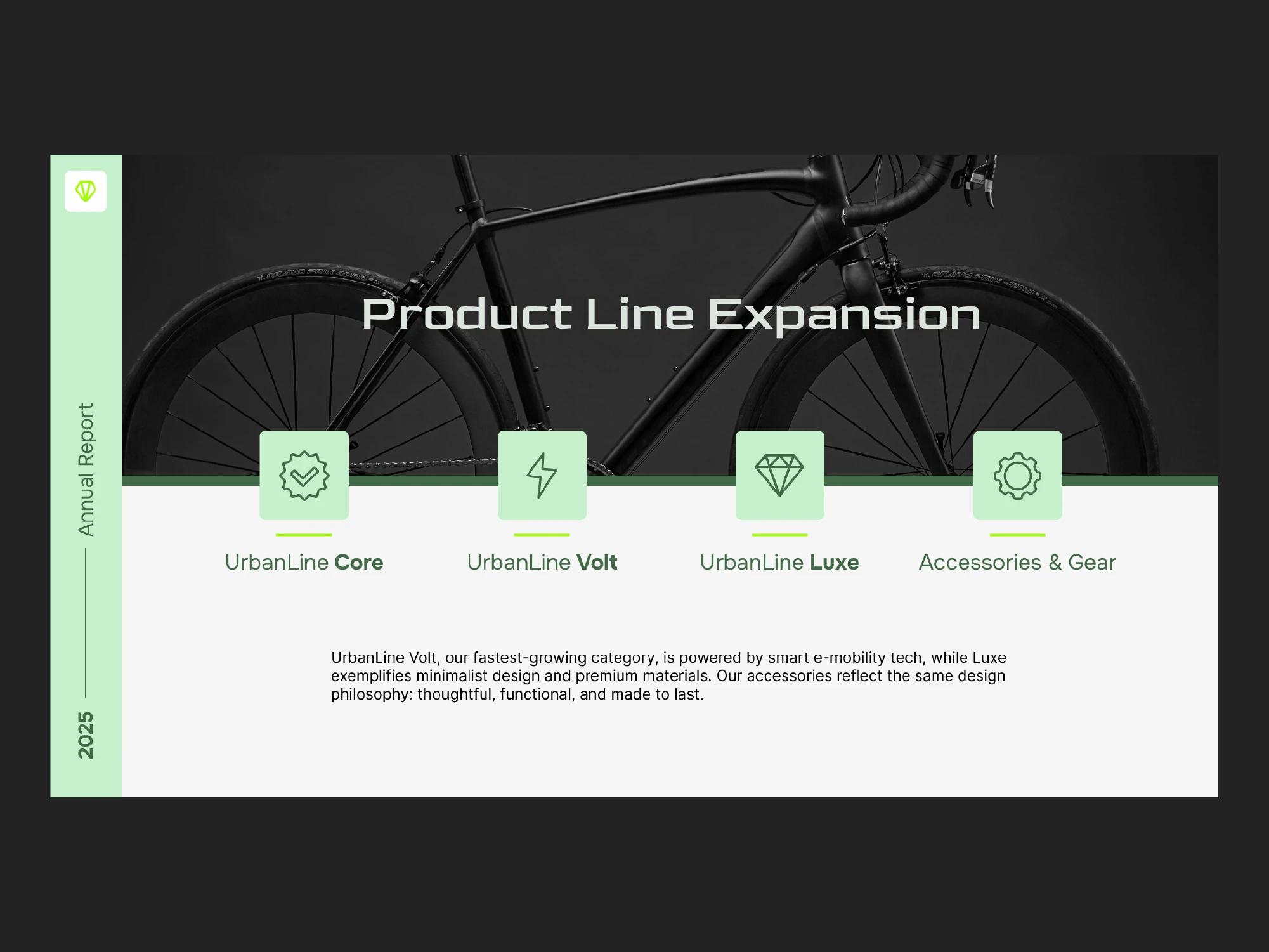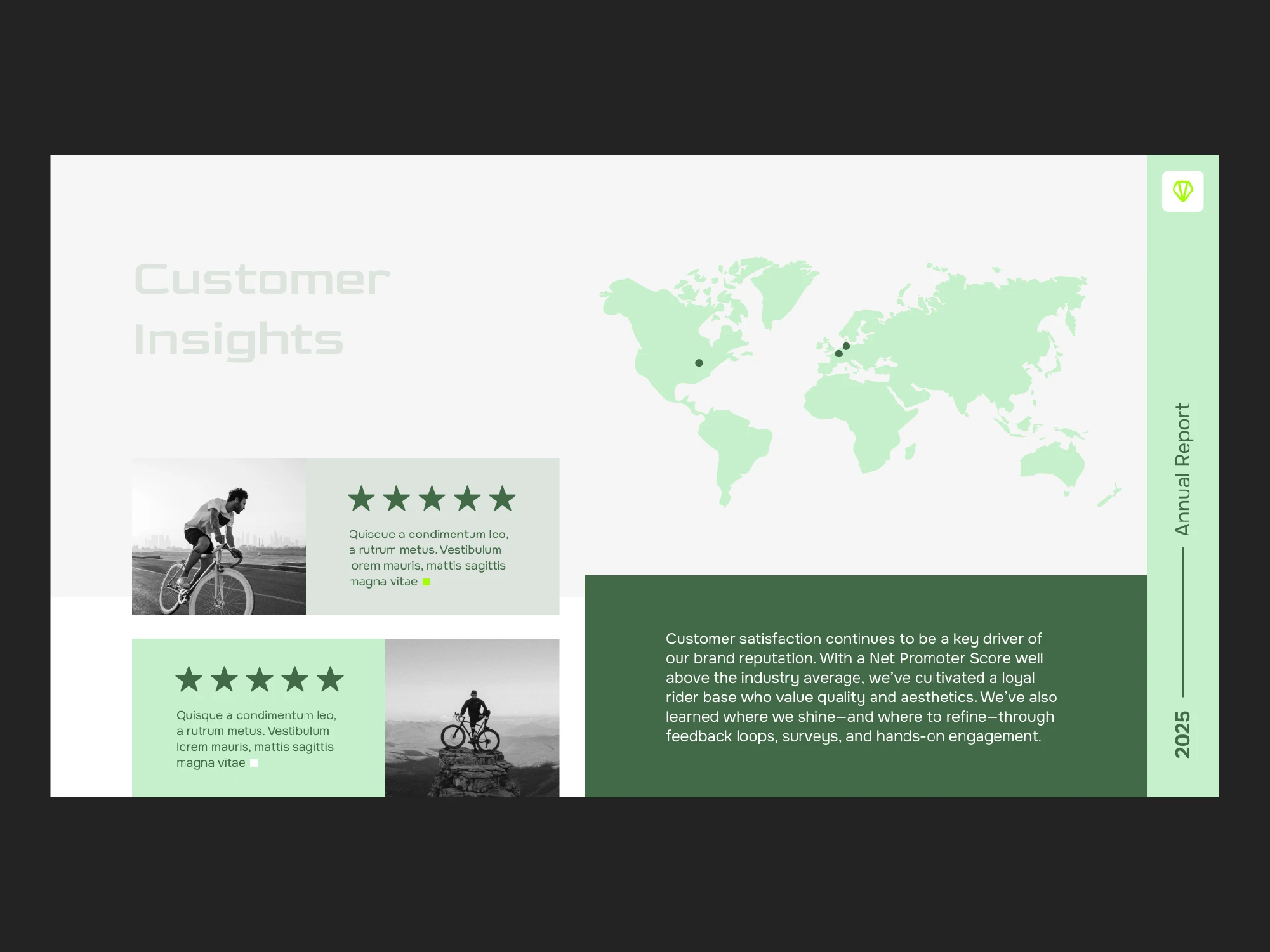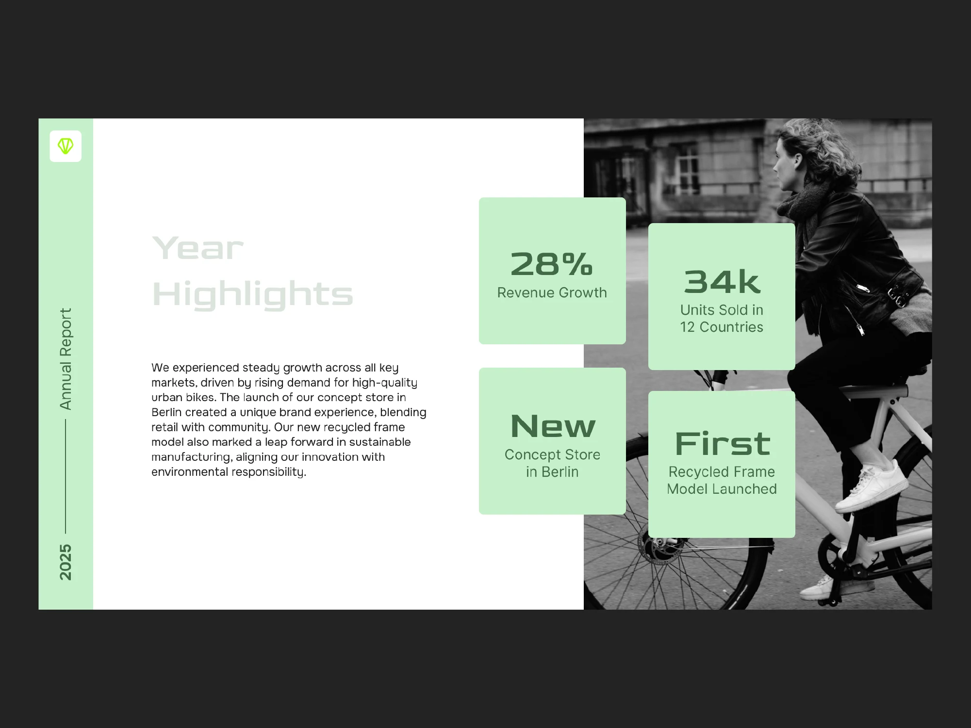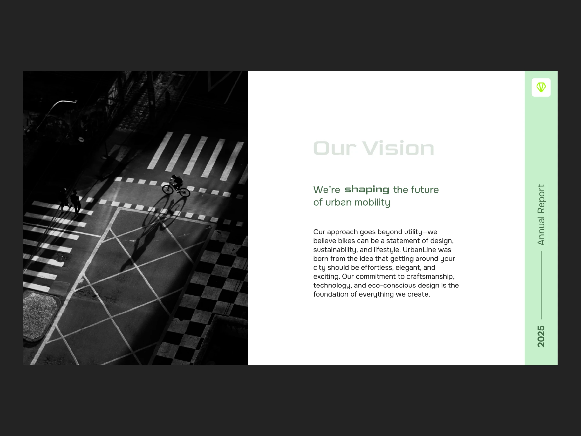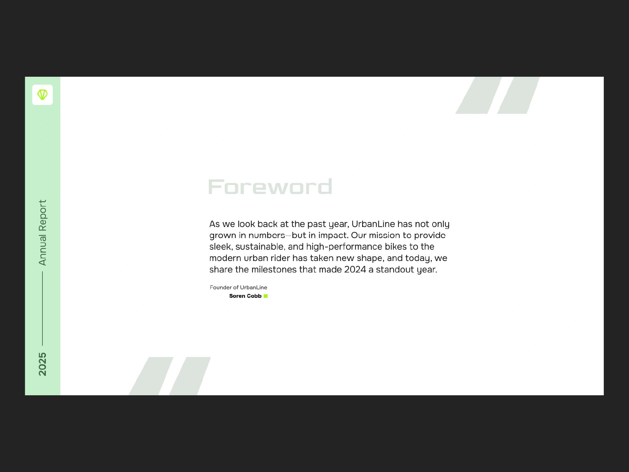 I designed this annual business report presentation in Figma to communicate company performance, vision, and strategy in a clear and engaging way.