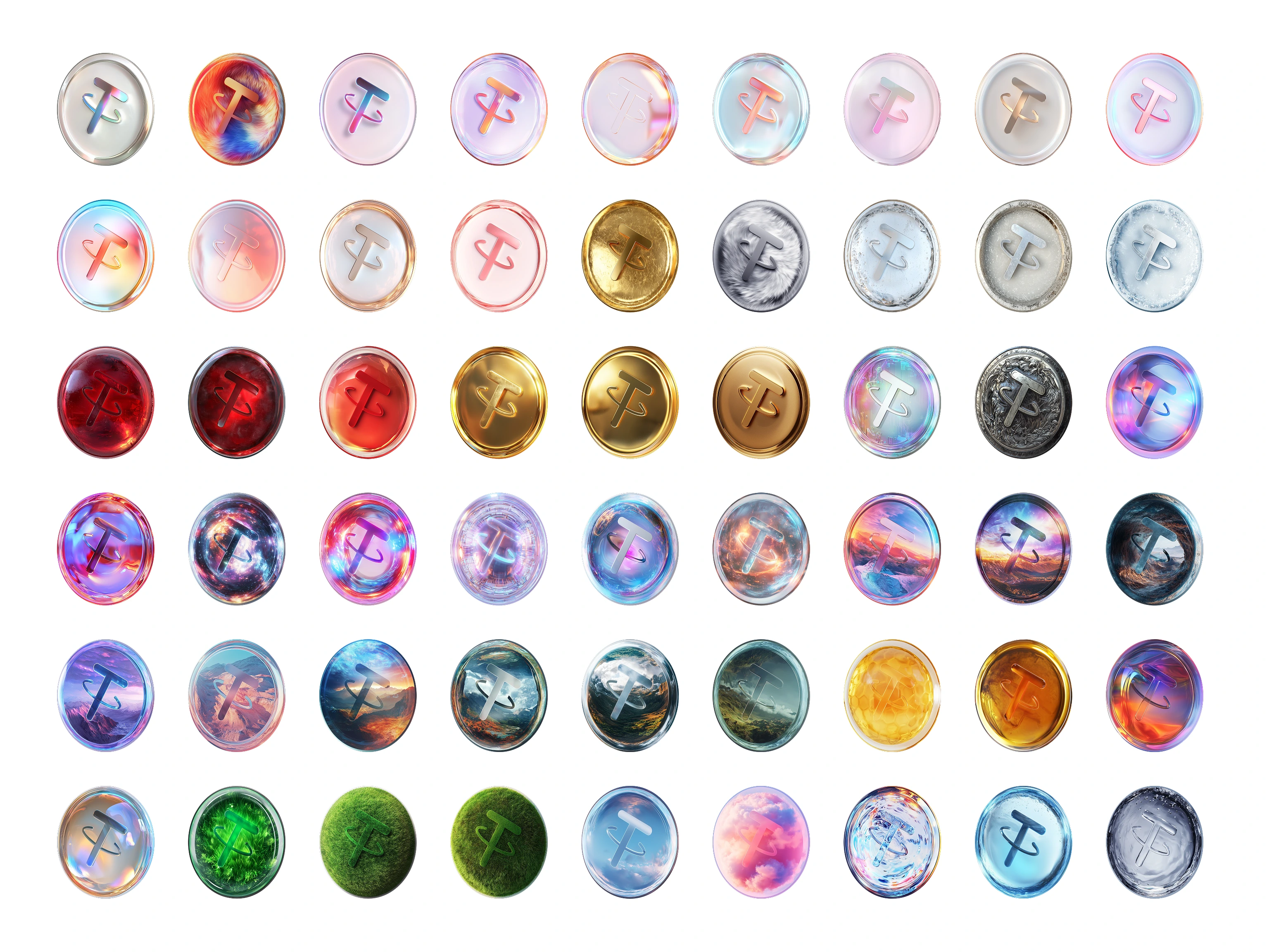 We created 50+ unique 3D coin skins that change randomly every time you open the app. One moment you're looking at liquid galaxy gradients, next time it's molten gold, then suddenly cosmic nebula or even moss-covered glass. The "T" logo stays frozen in place while entire universes swirl inside the coin. Keeps the experience visually fresh without adding cognitive load