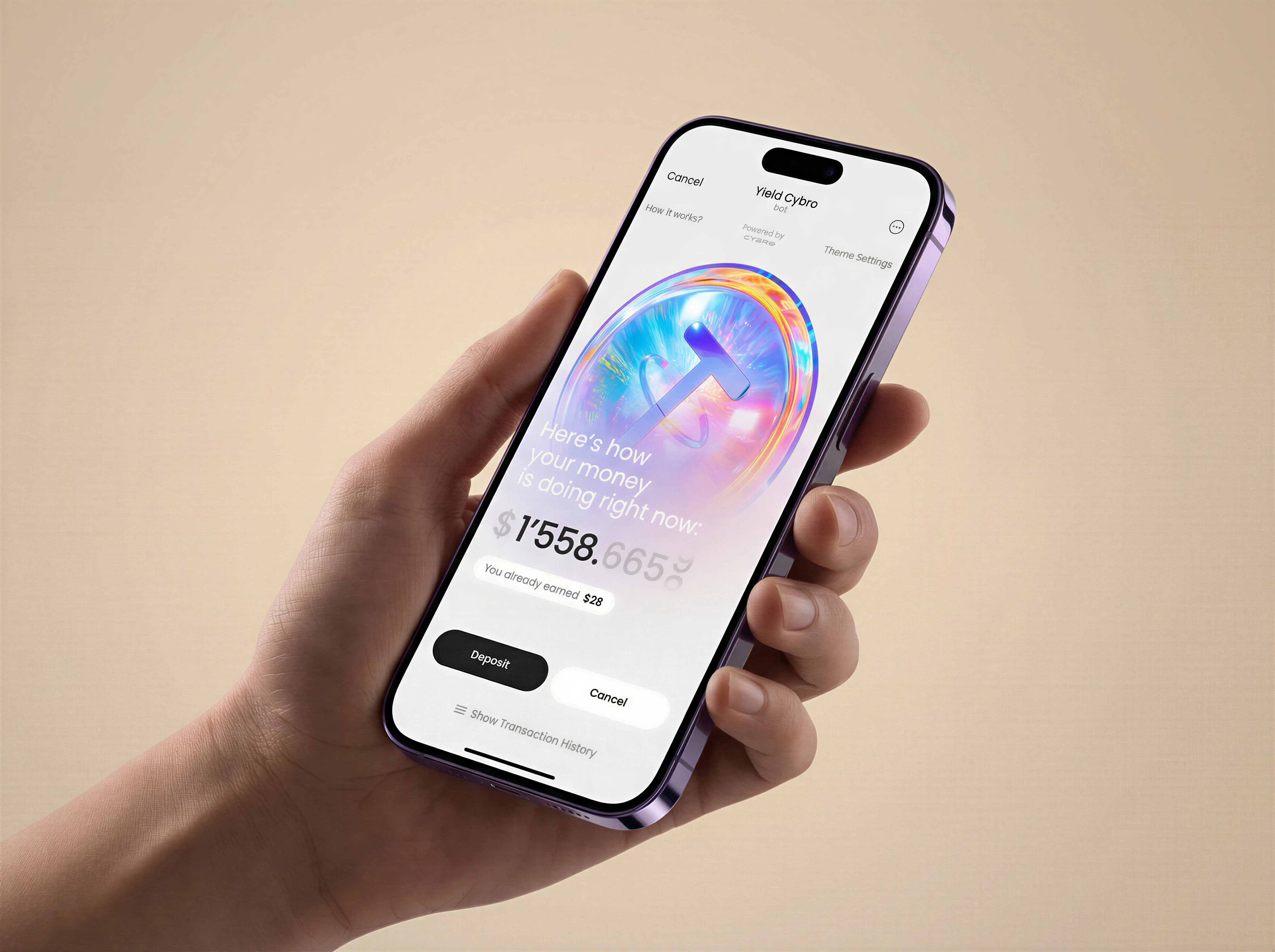 Meet Yield Cybro — a dead-simple USDT staking app that lives inside Telegram. Deposit stablecoins, earn passive yield. No complex mechanics, no confusing APY calculators, no bullshit. Just pure farming: the more you put in, the more you get back.