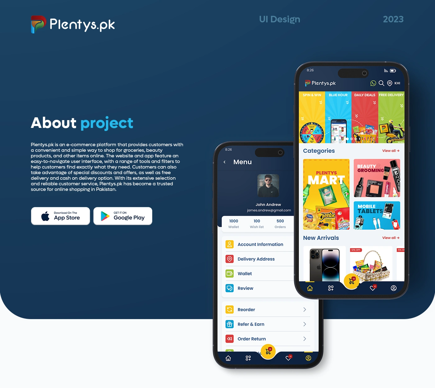 Redesigned Plentys.pk app UI to make it cleaner and more user-friendly, improving navigation, user experience, and overall engagement.