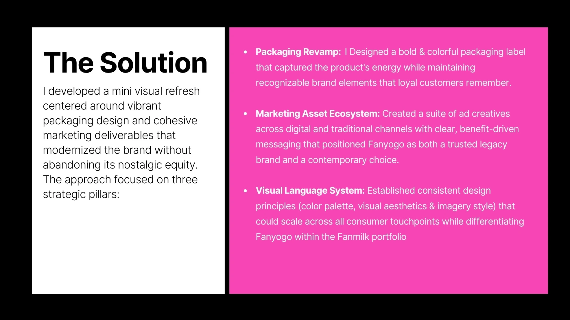 I delivered a revitalized brand identity with vibrant packaging and cohesive marketing materials to establish the brand as the top refreshment choice.